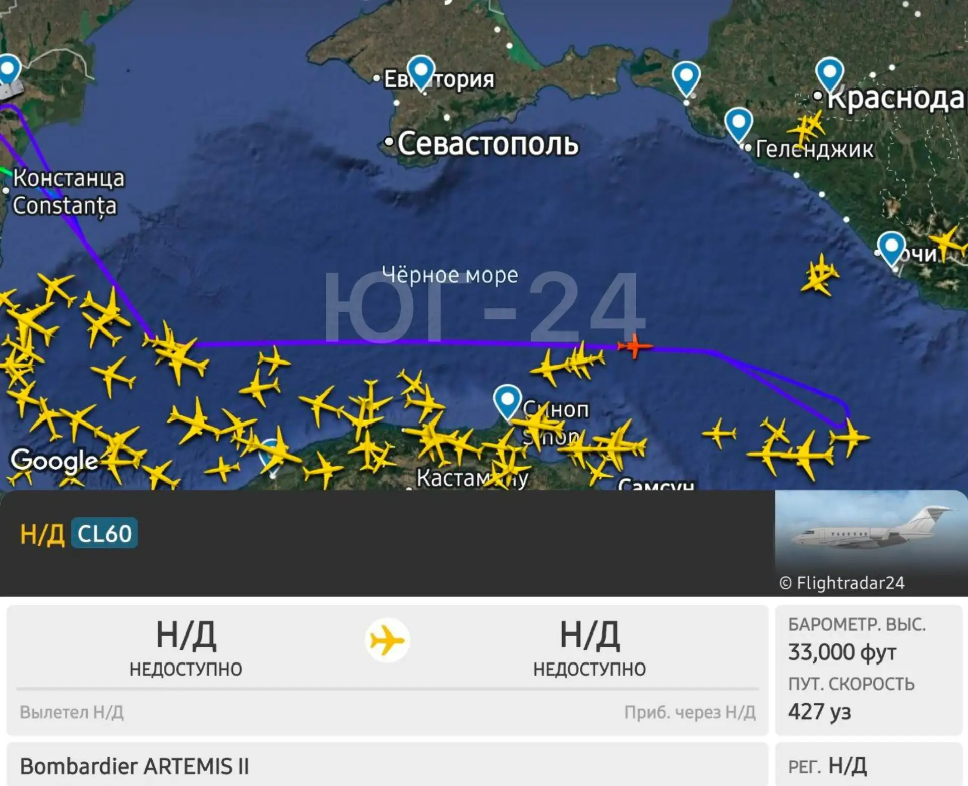 ⚡️НАТОвский самолёт разведчик Bombardier ARTEMIS II ведёт агрессивную разведку над акваторией Чёрного моря