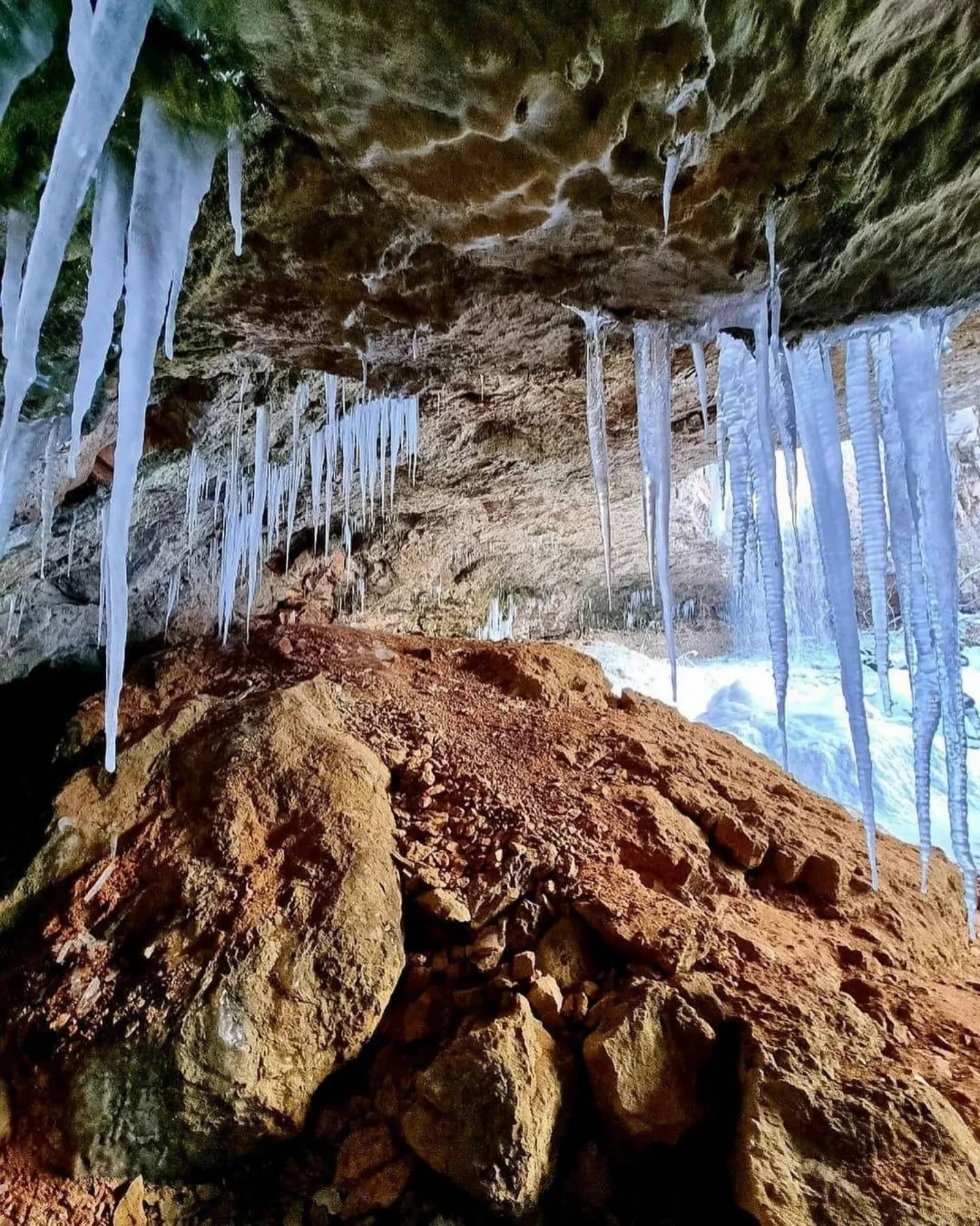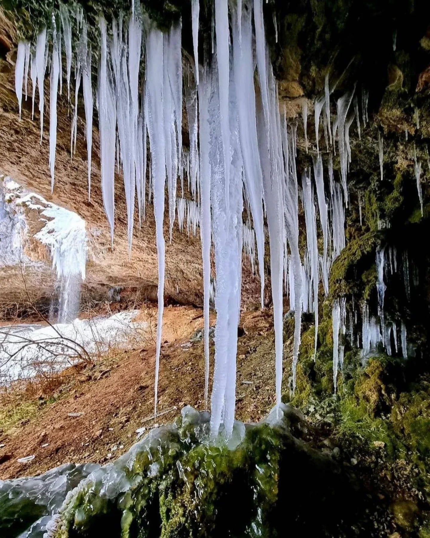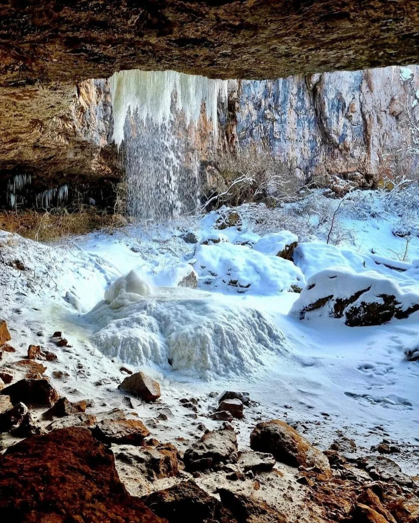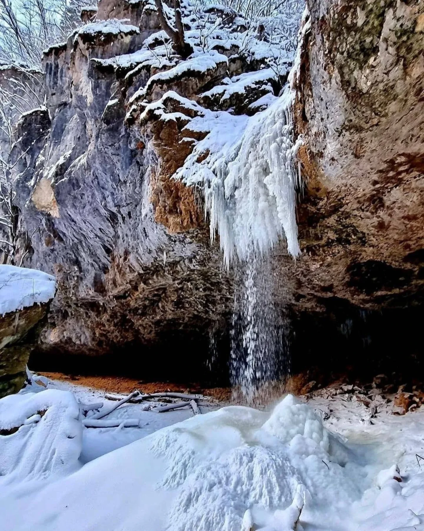 Потрясающий водопад Великан. Сейчас очень красивое время, когда склоны все в подснежниках.