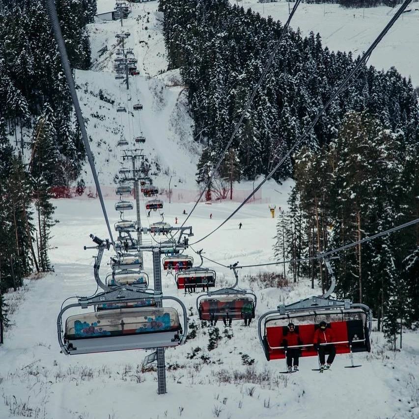 🥳На курорте множество развлечений: лыжи и сноуборд, канатная дорога, тюбинг, каток с видом на горы.