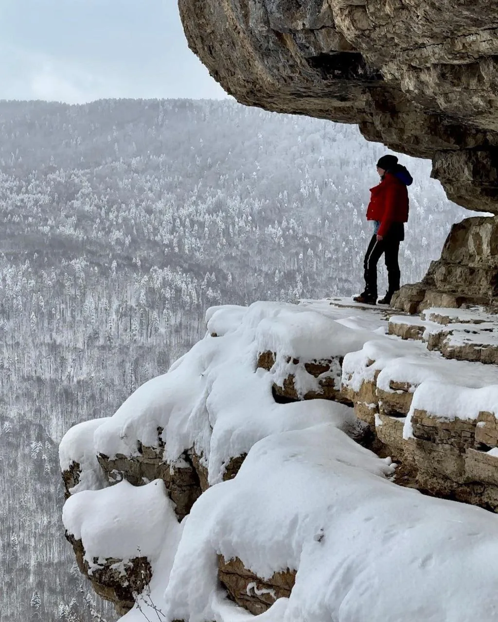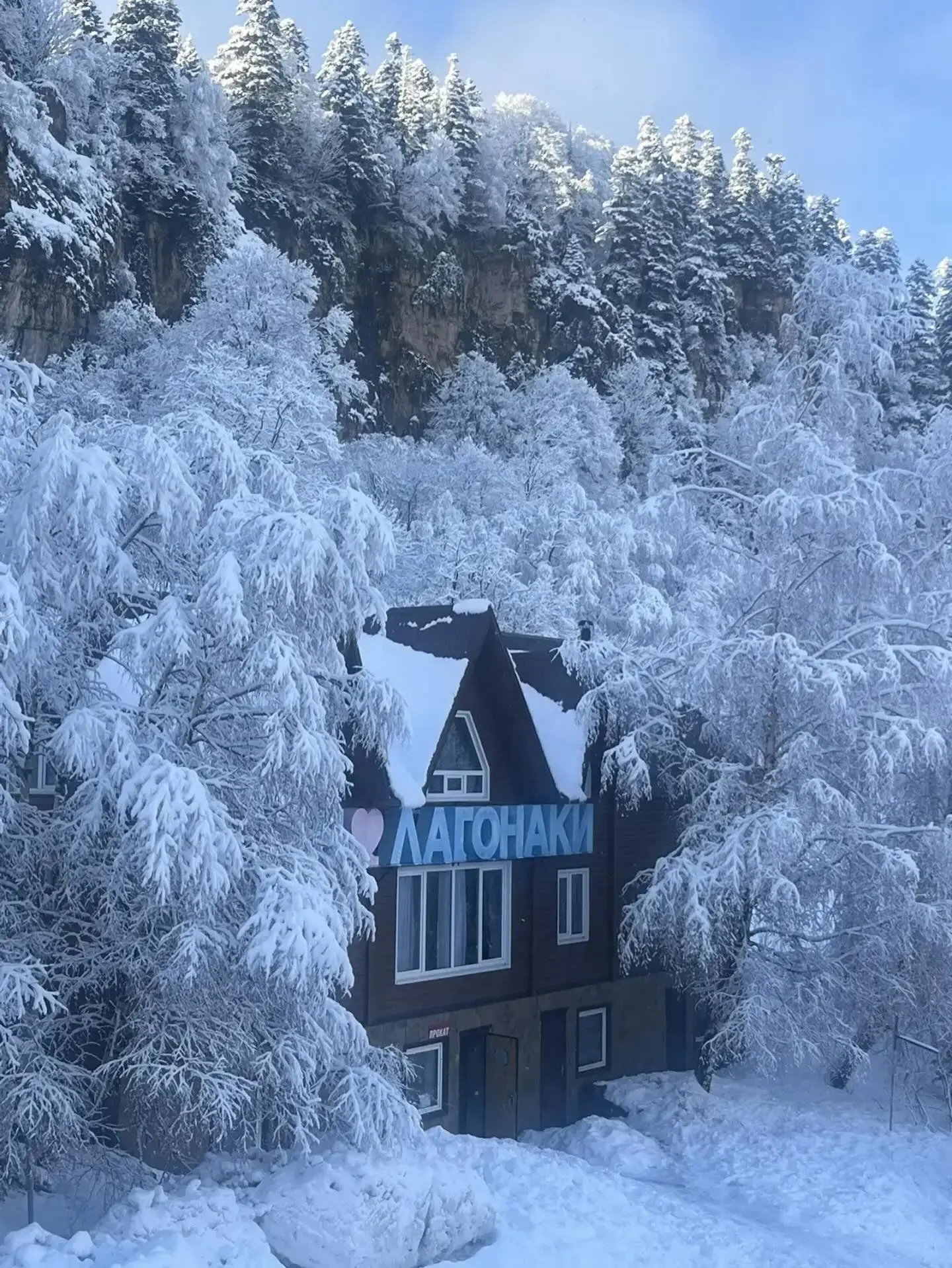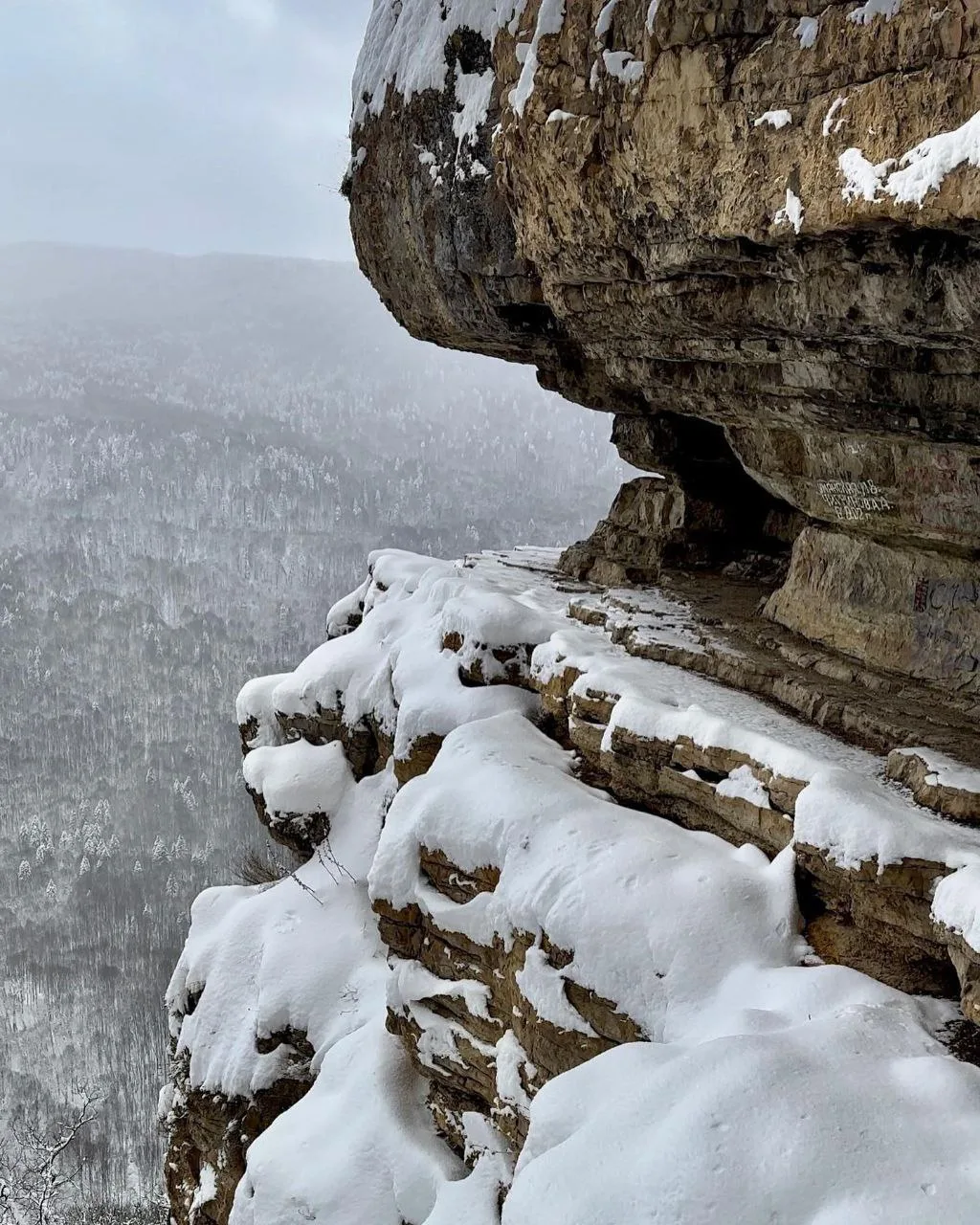 Находится в Лагонаки на границе Краснодарского края и Адыгеи. Здесь все еще лежит снег.