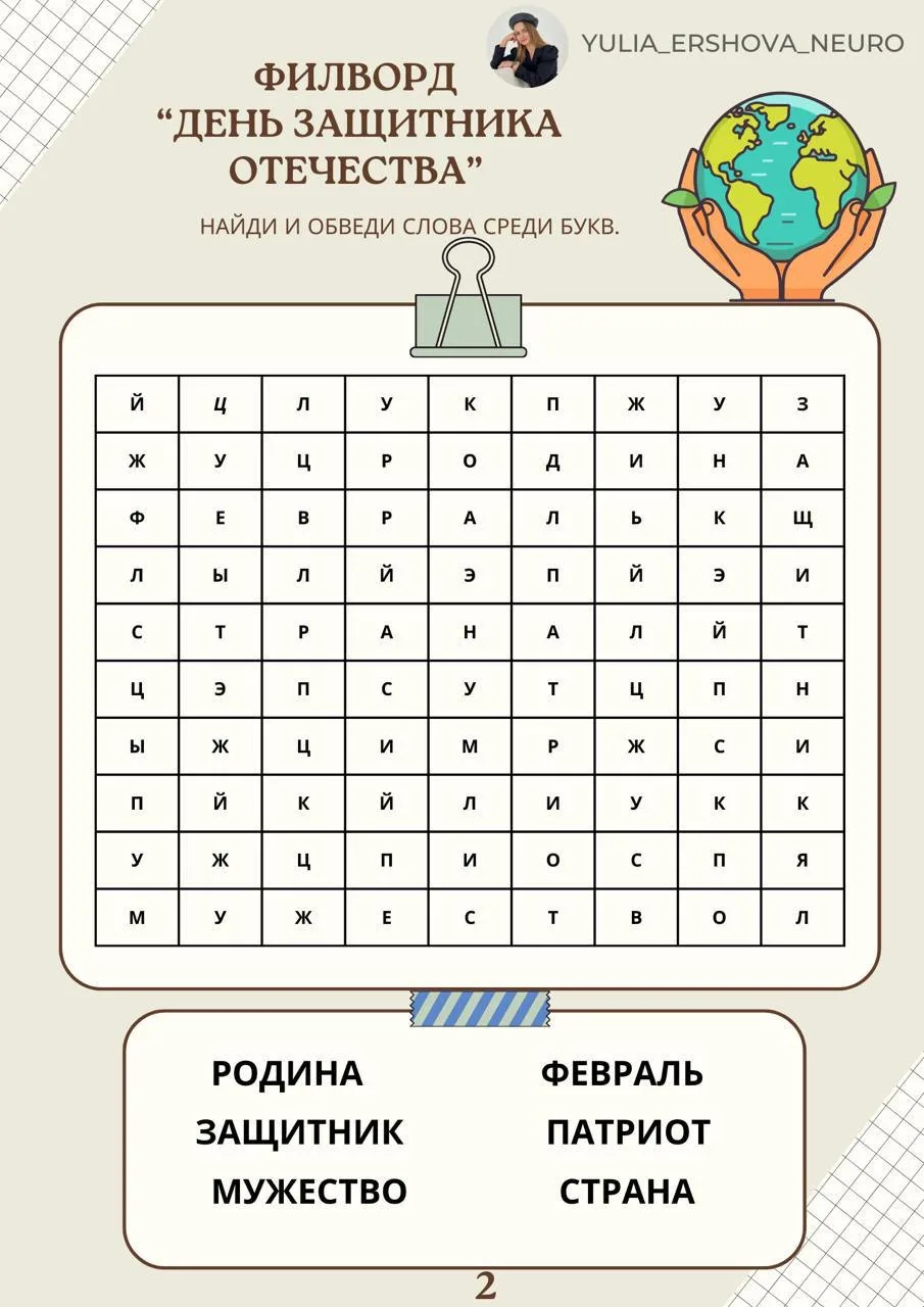 🧩Тематические филворды к Дню защитника Отечества от нейропсихолога