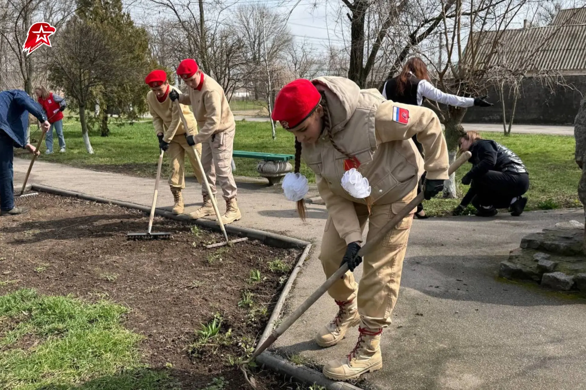 Вместе с активистами Движения Первых ребята привели в порядок сквер Героя Советского Союза П. Т. Одинца, возложили цветы. Юнармейцы с 2023 года держат шефство над этим местом: ухаживают, следят, сохраняют память❤️