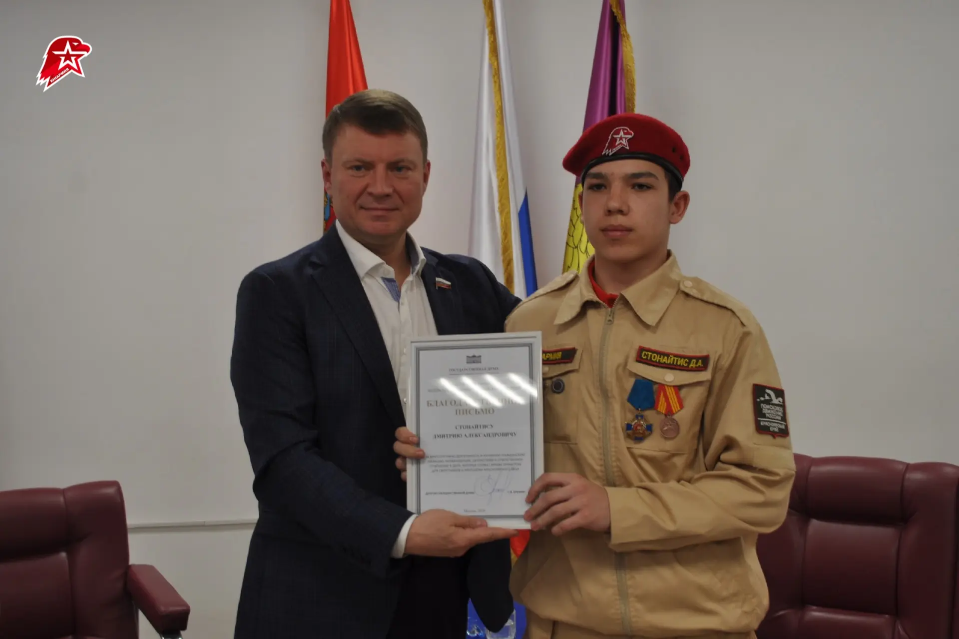 В конце мероприятия отметили самых активных: благодарственное письмо получил юнармеец Дмитрий Стонайтис.
