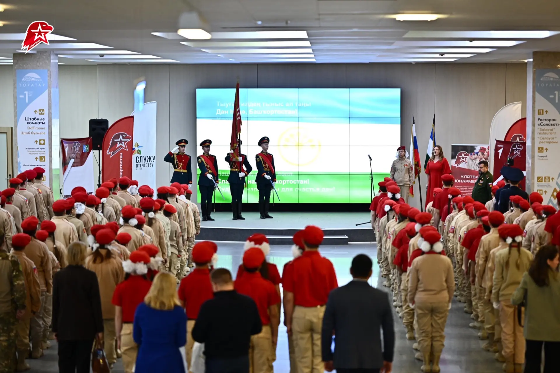 В Уфе в рамках республиканского образовательного форума «Служу Отечеству» прошла церемония посвящения школьников в ряды Движения. Ребята из 24 муниципалитетов и городских округов Республики Башкортостан приняли юнармейскую клятву.