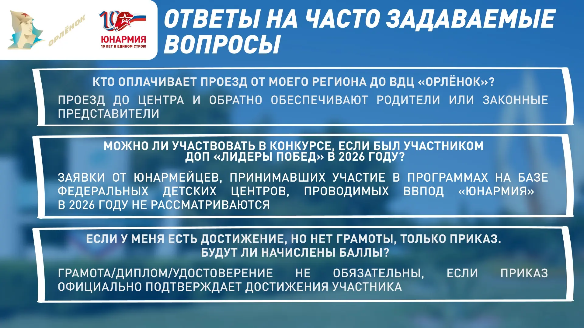 До окончания приёма заявок на программу «Созидатели Побед» во Всероссийский детский центр «Орлёнок» осталось всего 3 дня.