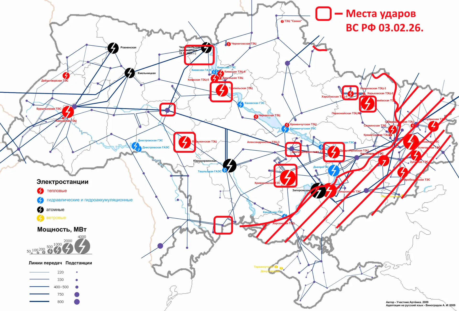 Судя по данным мониторинговых ресурсов мы вновь ударили по Киевской ГЭС и по подстанциям вокруг Киева. Что сразу обвалило графики отключений.