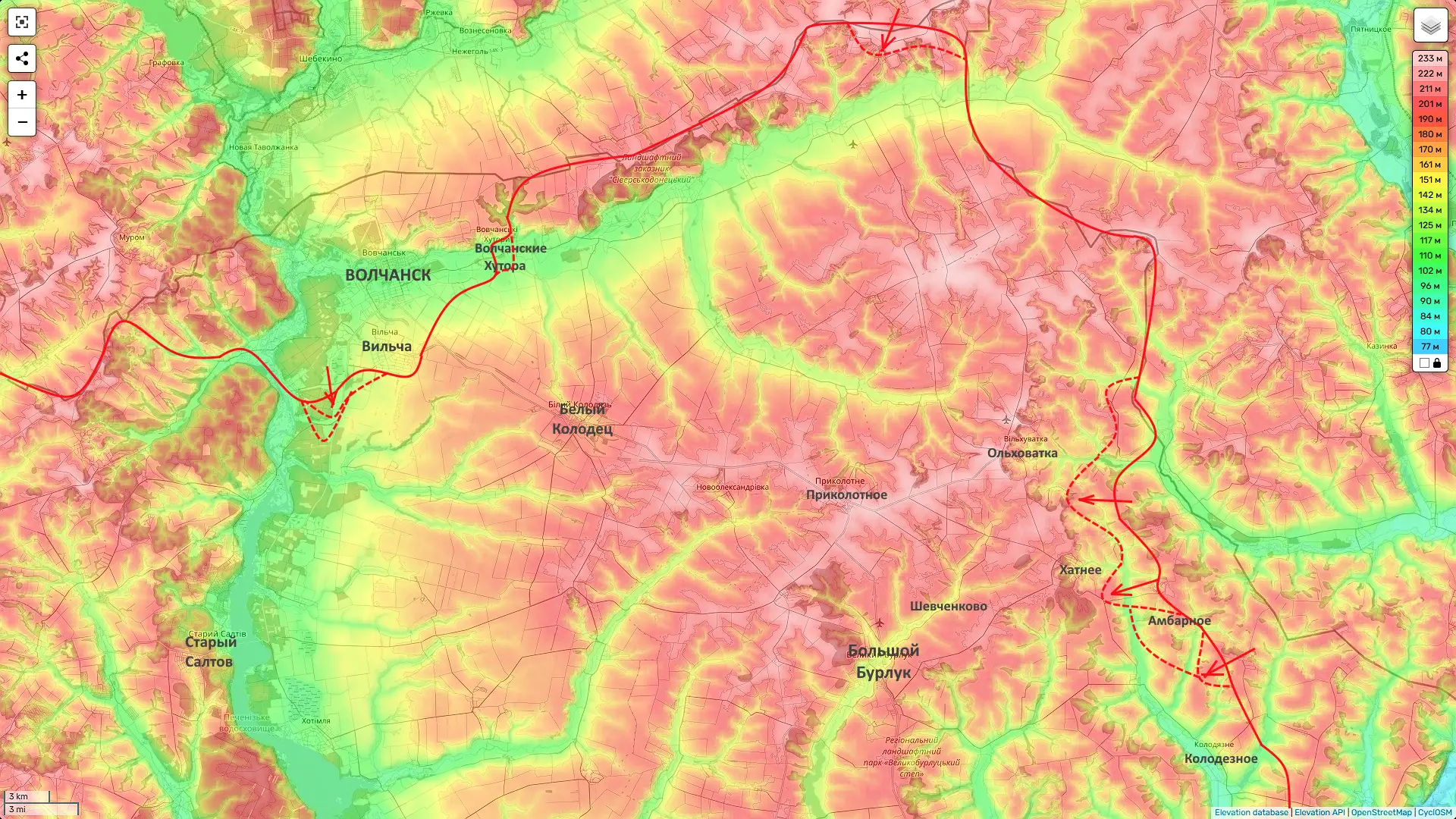Но чтобы далее более безопасно двигаться здесь на юг очень важно взять под контроль холмы на западном берегу Северского Донца. Которые к тому поросли глубоким лесом. И рубить логистику подразделениям ВСУ, которые его занимают проще всего сейчас (листвы нет + выпал снег).