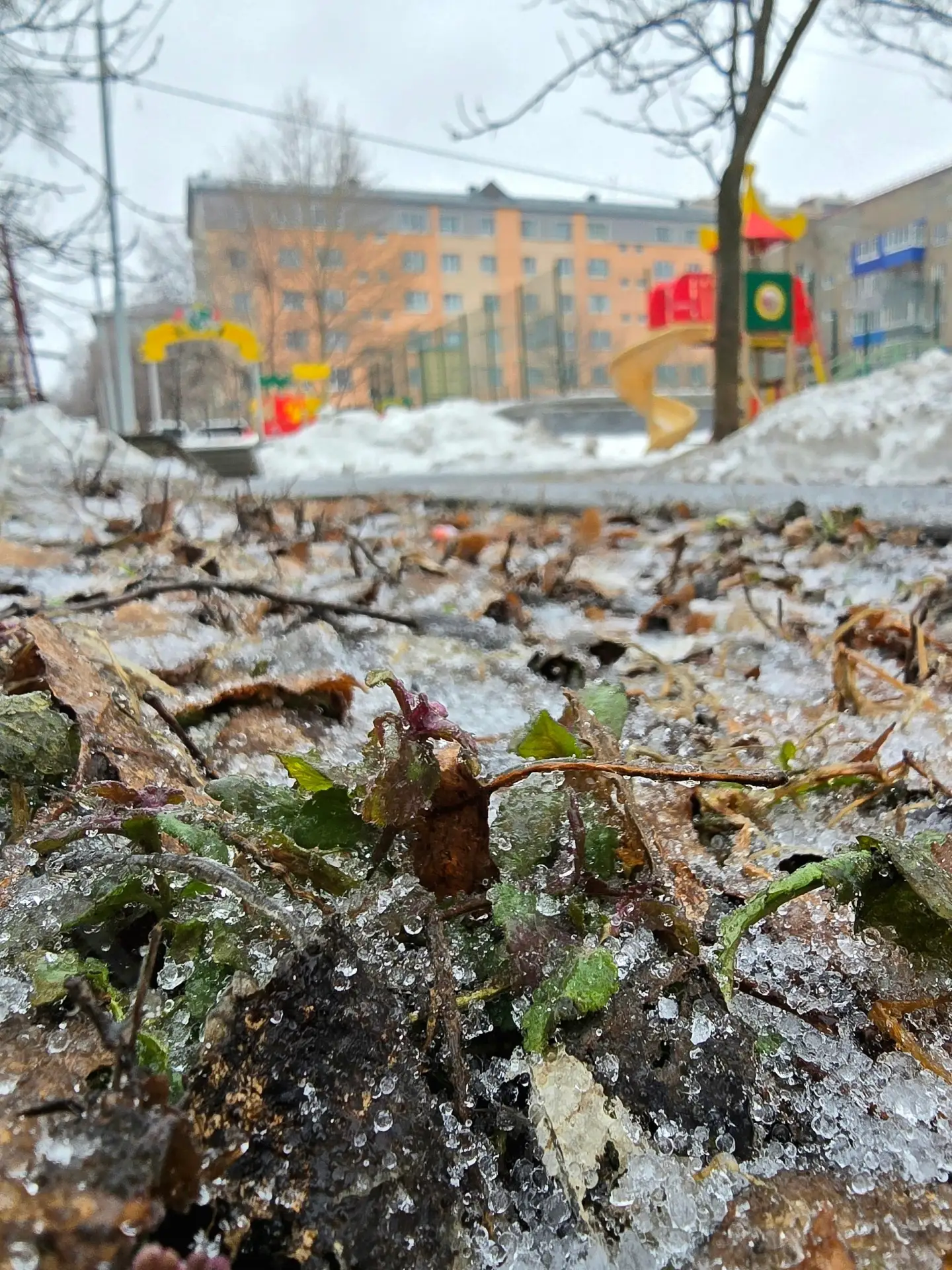 А недалеко на оттаявшей земле - разноцветное конфетти - воспоминания о том, что кто-то праздновал Новый год прямо здесь.