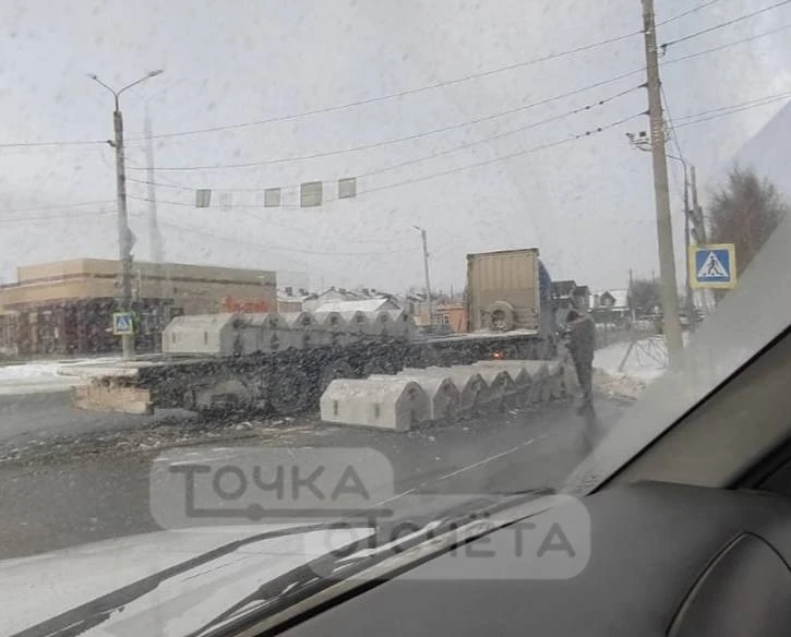 ⚡️Бетонные блоки рухнули с прицепа на проезжую часть в Южно-Сахалинске