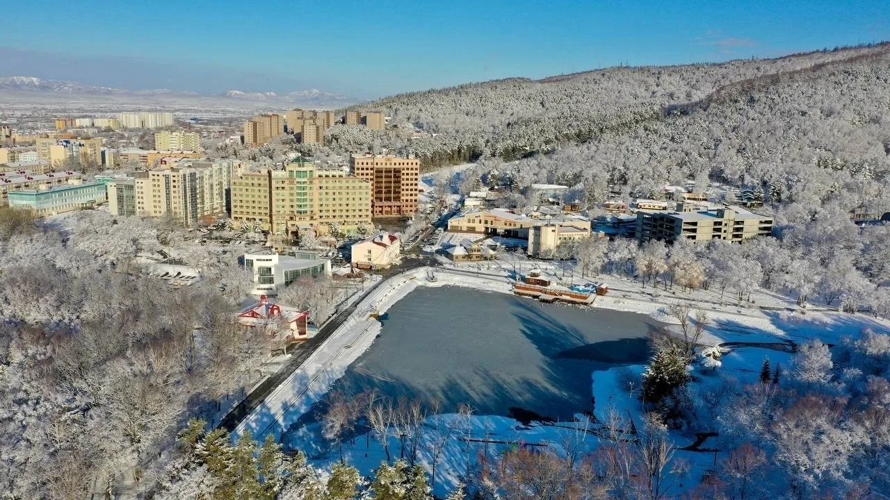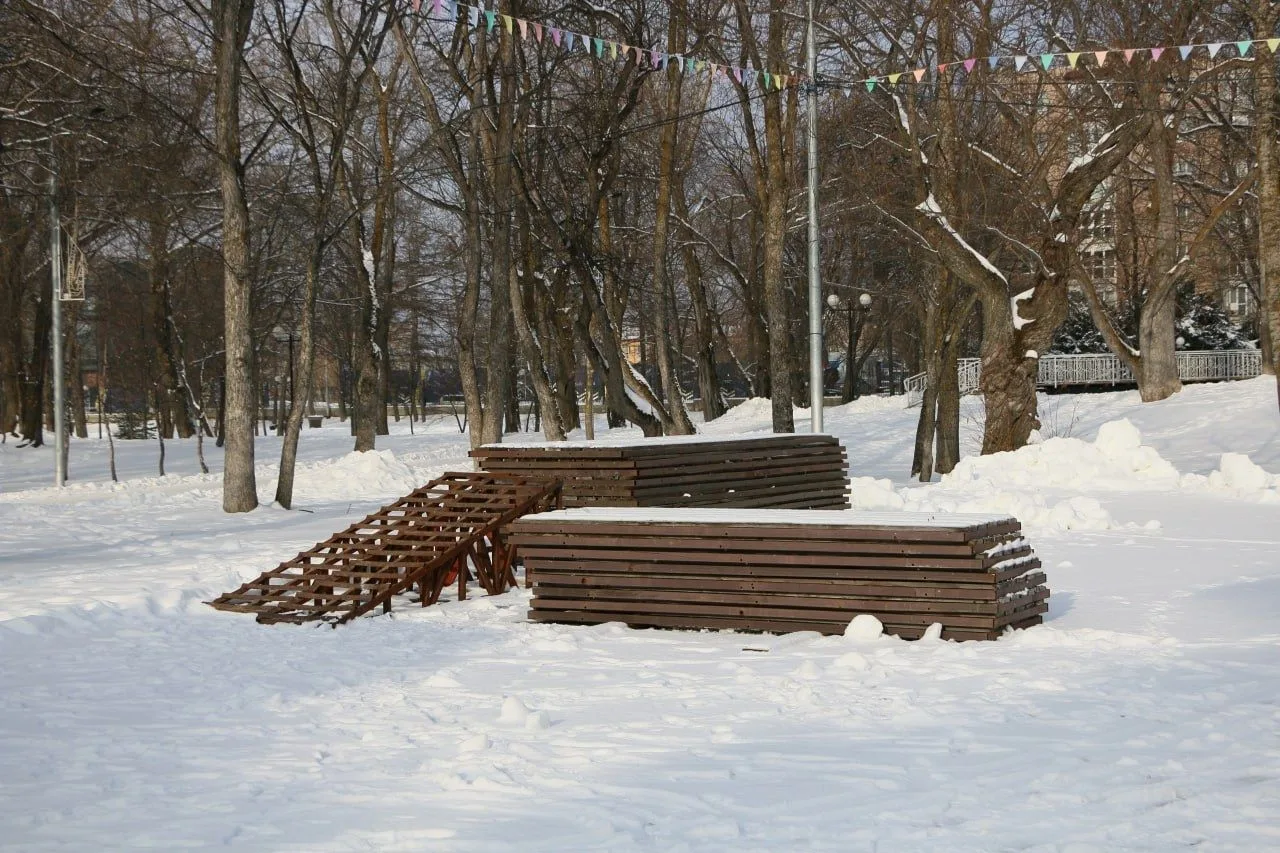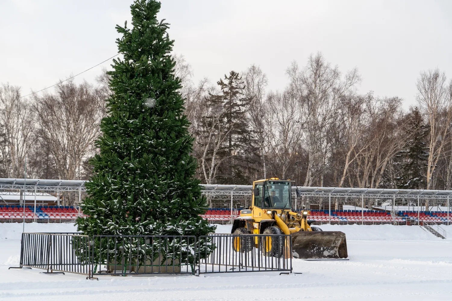 🧊Ледово-снежный космический городок начали строить в городском парке Южно-Сахалинска