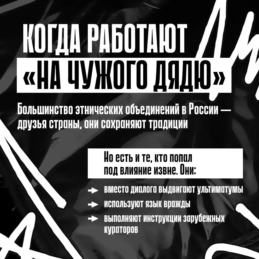 Такие организация предлагают гранты на работу этнических объединений, но взамен требуют выполнять политические заказы из-за рубежа. Для чего?