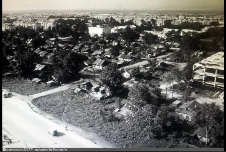 Видно начало строительства Дома Торговли и частный сектор до пересечения улиц Поповича - Дзержинского.