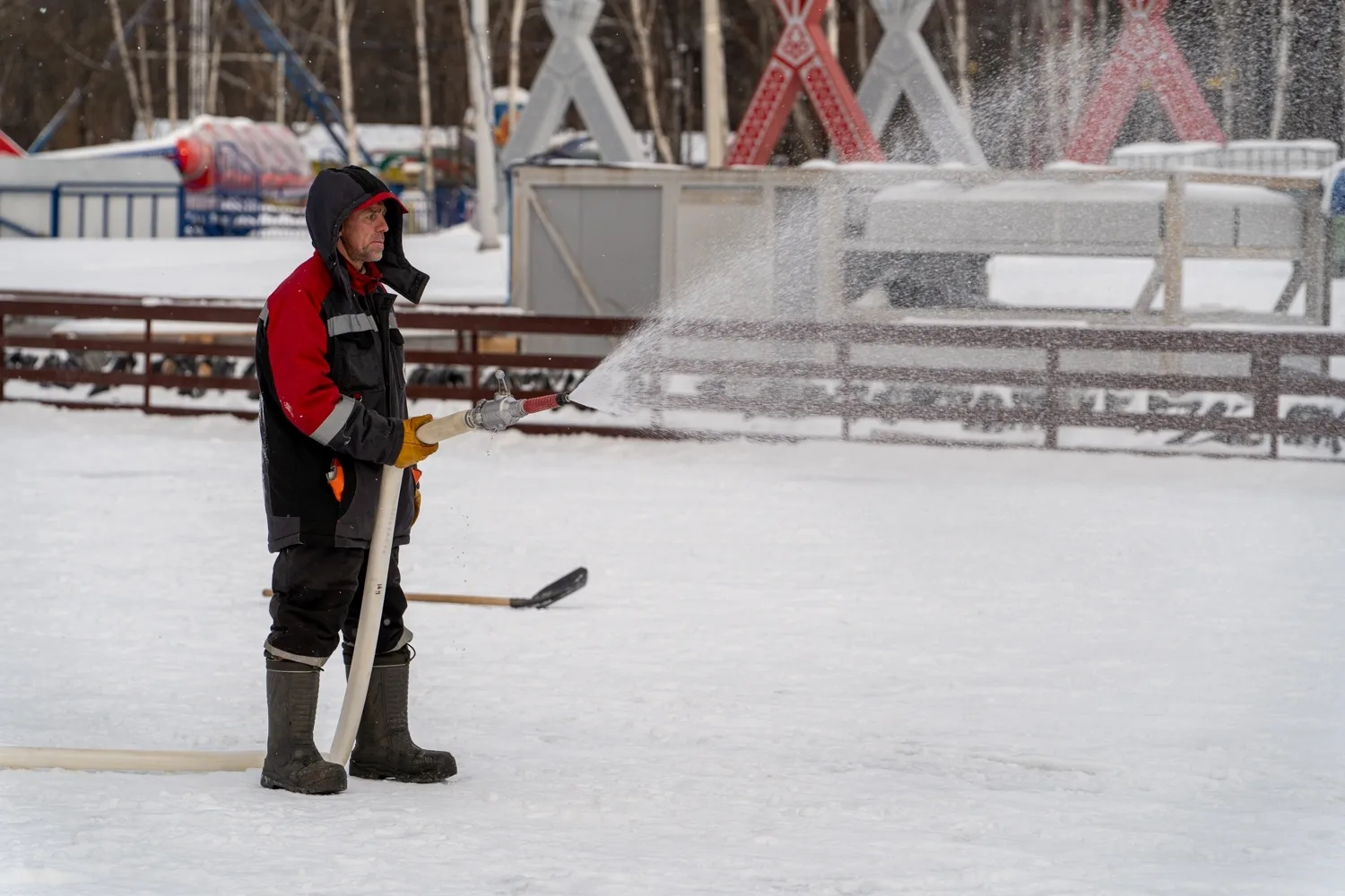 В городском парке приступили к заливке катка с айс-матами ⛸