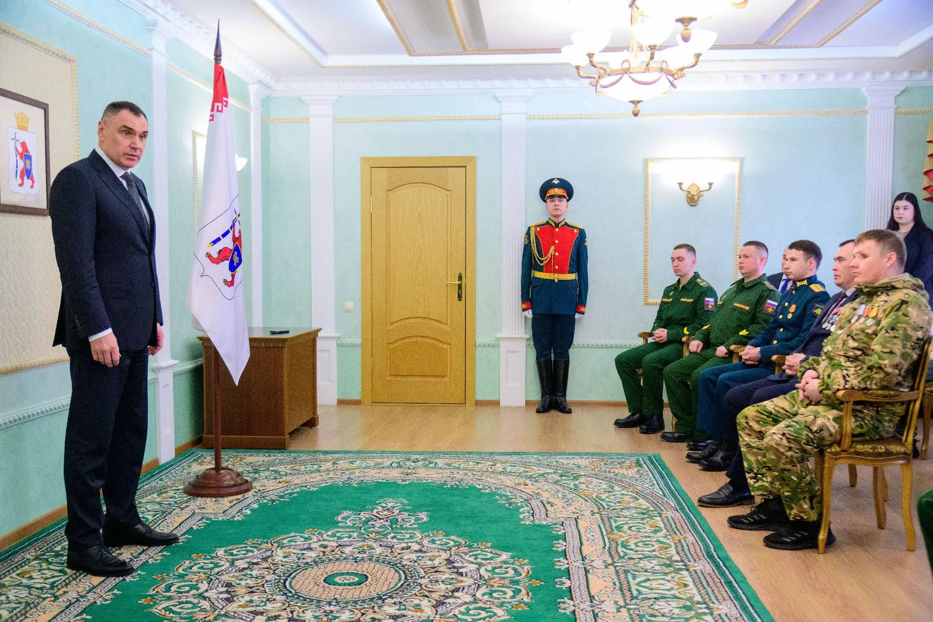 В преддверии Дня защитника Отечества вручил военнослужащим государственные награды, которых они удостоены указом Президента Российской Федерации.