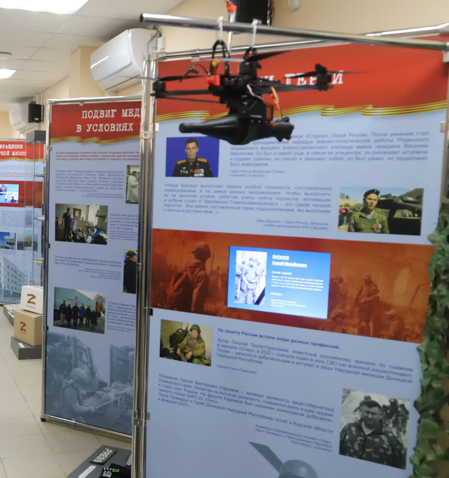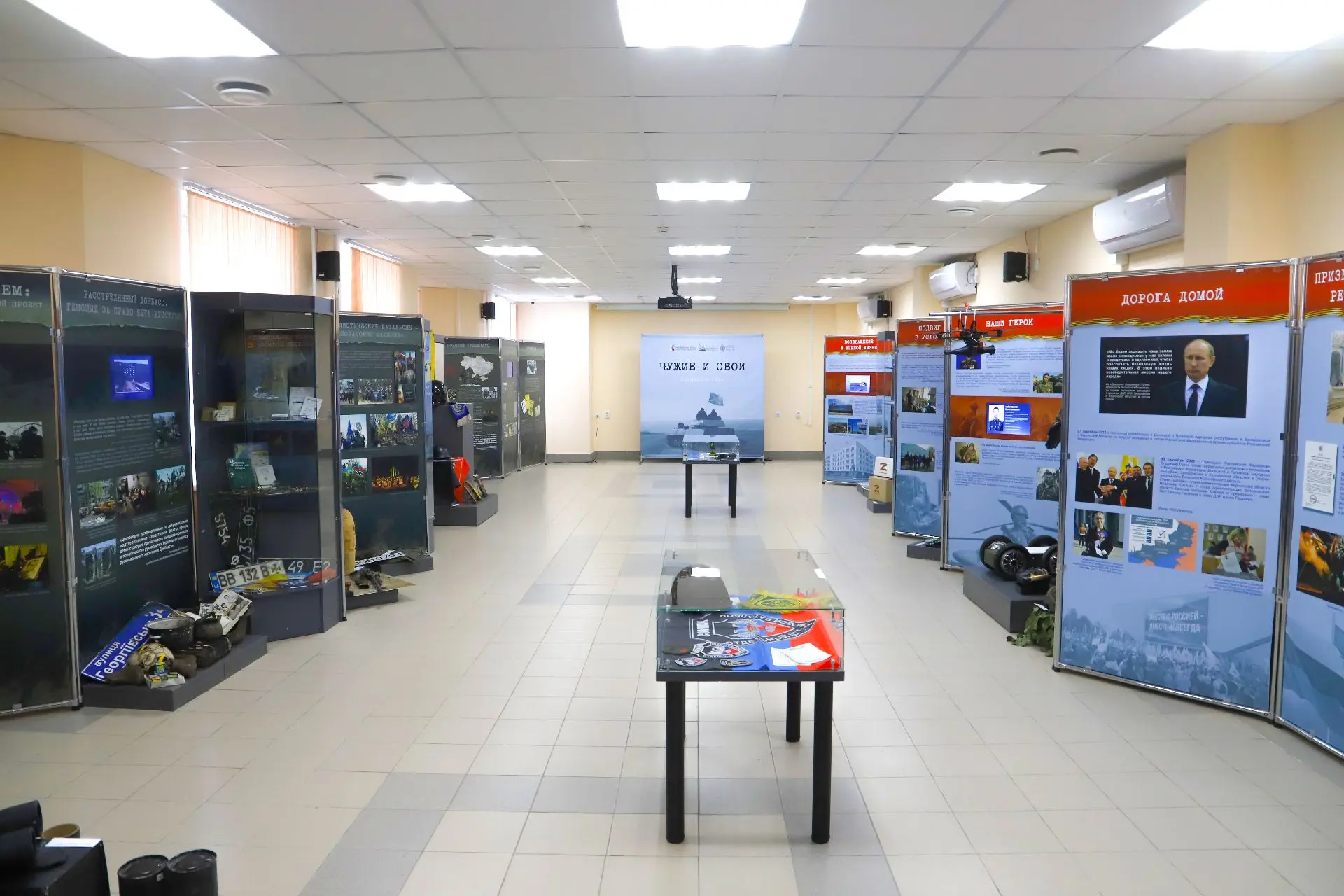 Экспонаты и документы представлены Российским историческим обществом и фондом «История Отечества» при поддержке Президентского фонда культурных инициатив. Выставка раскрывает правду о событиях, начиная с истоков украинского национализма и заканчивая примерами мужества наших бойцов, военных корреспондентов, медиков.