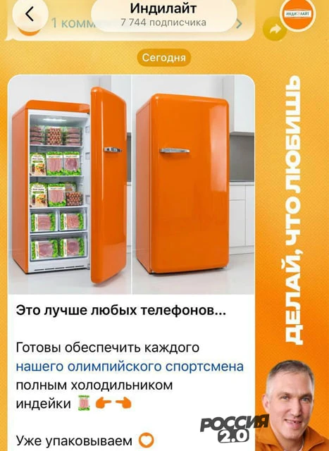 Сегодня «Билайн» заявил, что готов раздать всем нашим спортсменам по iPhone 17 Pro. А компания «Индилайт» пообещала всем холодильник с индейкой.