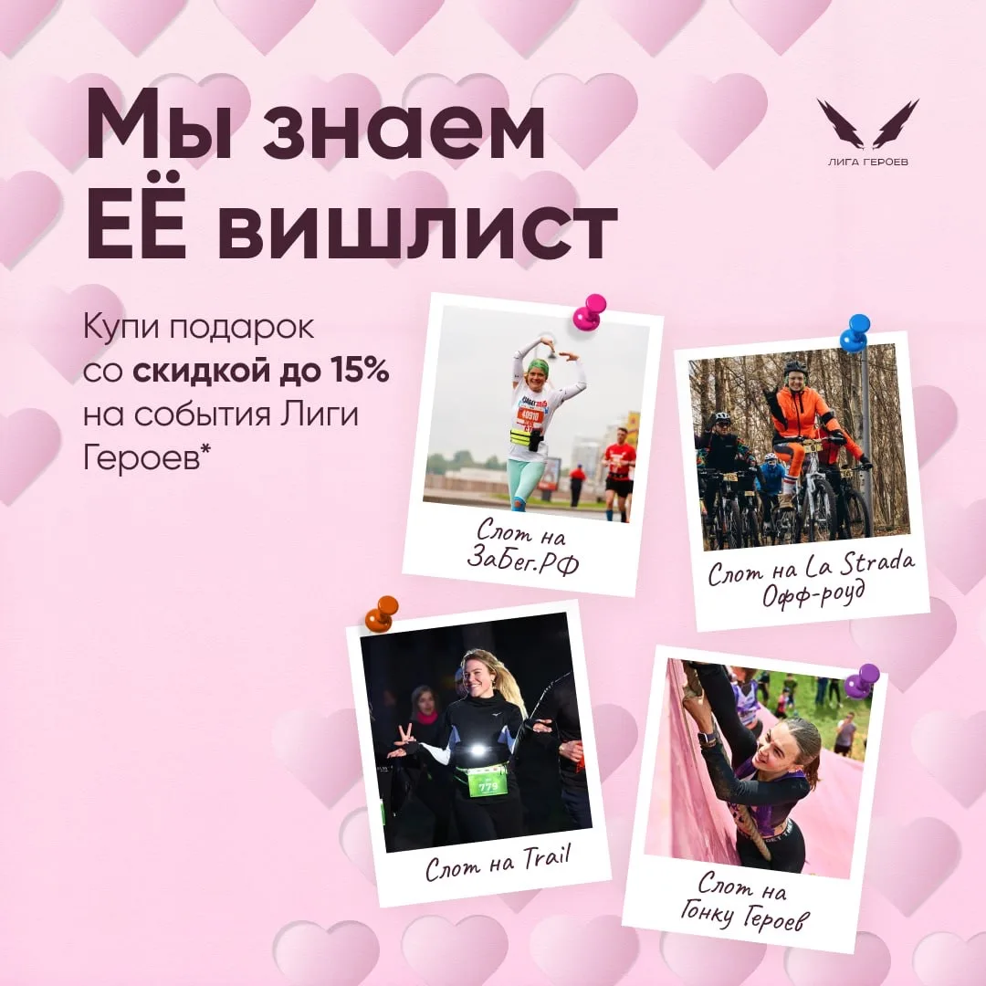 И знаем, что станет лучшим подарком для сильной половины стартовых кластеров: подготовили скидки до 15% на все события Лиги Героев для ваших классных подарков!