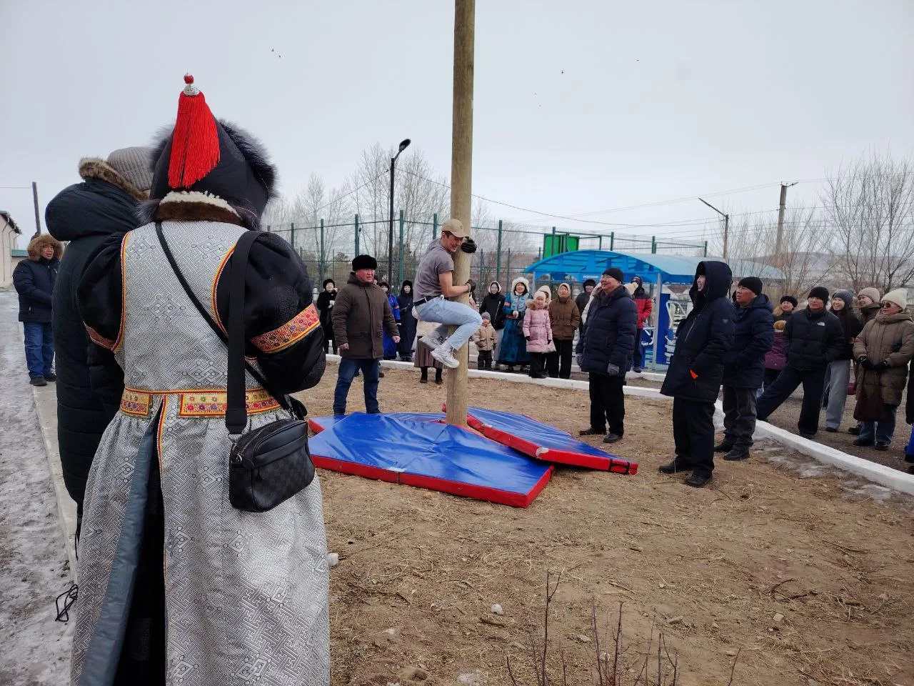 🇷🇺Под веселые частушки в этот момент публика поддерживала отчаянных забайкальцев, которые по традиции пытались забраться на масленичный столб. Подарки получили двое участников.
