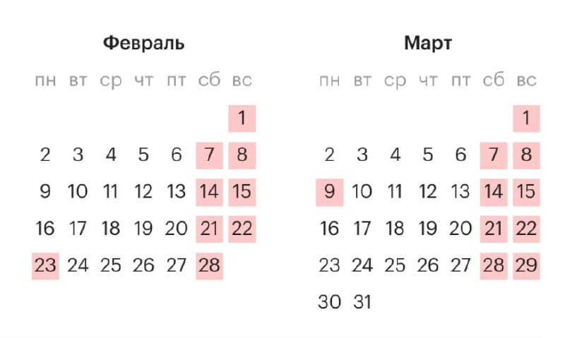 Вслед за этим россиян вновь будет ждать четырехдневная рабочая неделя: с 10 марта (вторник) по 13 марта (пятница).