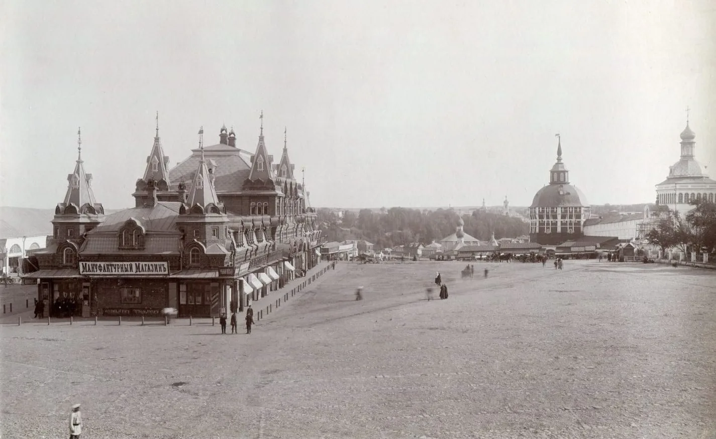Красногорская площадь. Верхние торговые ряды в центре города построены в 1902-1903 гг. по проекту архитектора Александра Афанасьевича Латкова в так называемом «русском стиле» XVII века.
