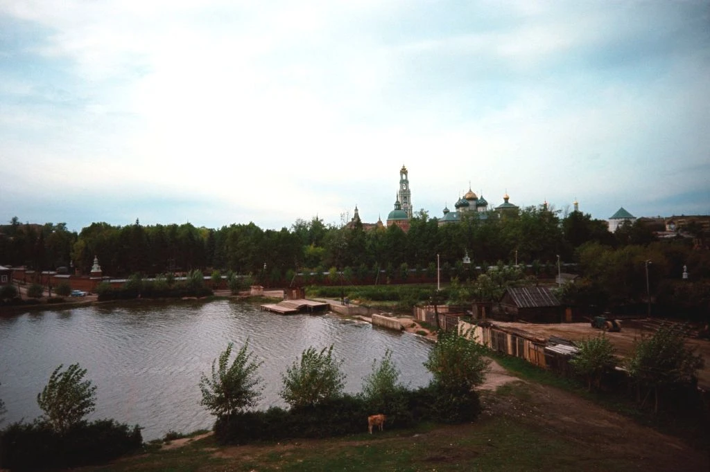 Виды Свято-Троицкой Сергиевой Лавры с колокольни Вознесенской церкви. На фото, на среднем плане в центре, запечатлено здание «центральной» электростанции. Здание было построено в 1902 году согласно контракта между концессионером А.М. Пугачевским и городским управлением на проведение трамвая и электрического освещения Посада от станции Сергиево до Черниговского скита. Концессионер предполагал открыть электрическое освещение уже в 1902 году, что не было исполнено по независящим от концессионера причинам.