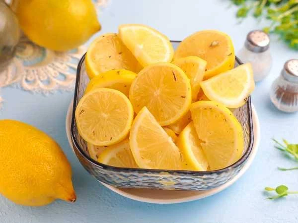 Лимоны ошпарьте кипятком, удалите хвостики и косточки. Мелкие плоды разрежьте пополам, крупные — ломтиками. Выложите в банку. Соль, сахар и специи растворите в воде, залейте лимоны рассолом. Емкость прикройте, но не закрывайте полностью, храните в прохладном месте, каждые два дня перемешивая. Через неделю рассол помутнеет — это нормально. Спустя две недели лимоны будут готовы: кожура станет мягкой, вкус — насыщенным.