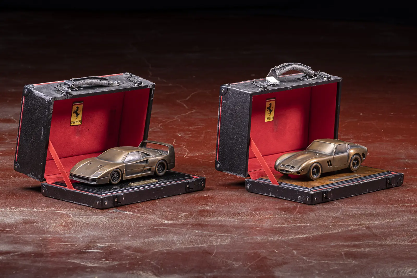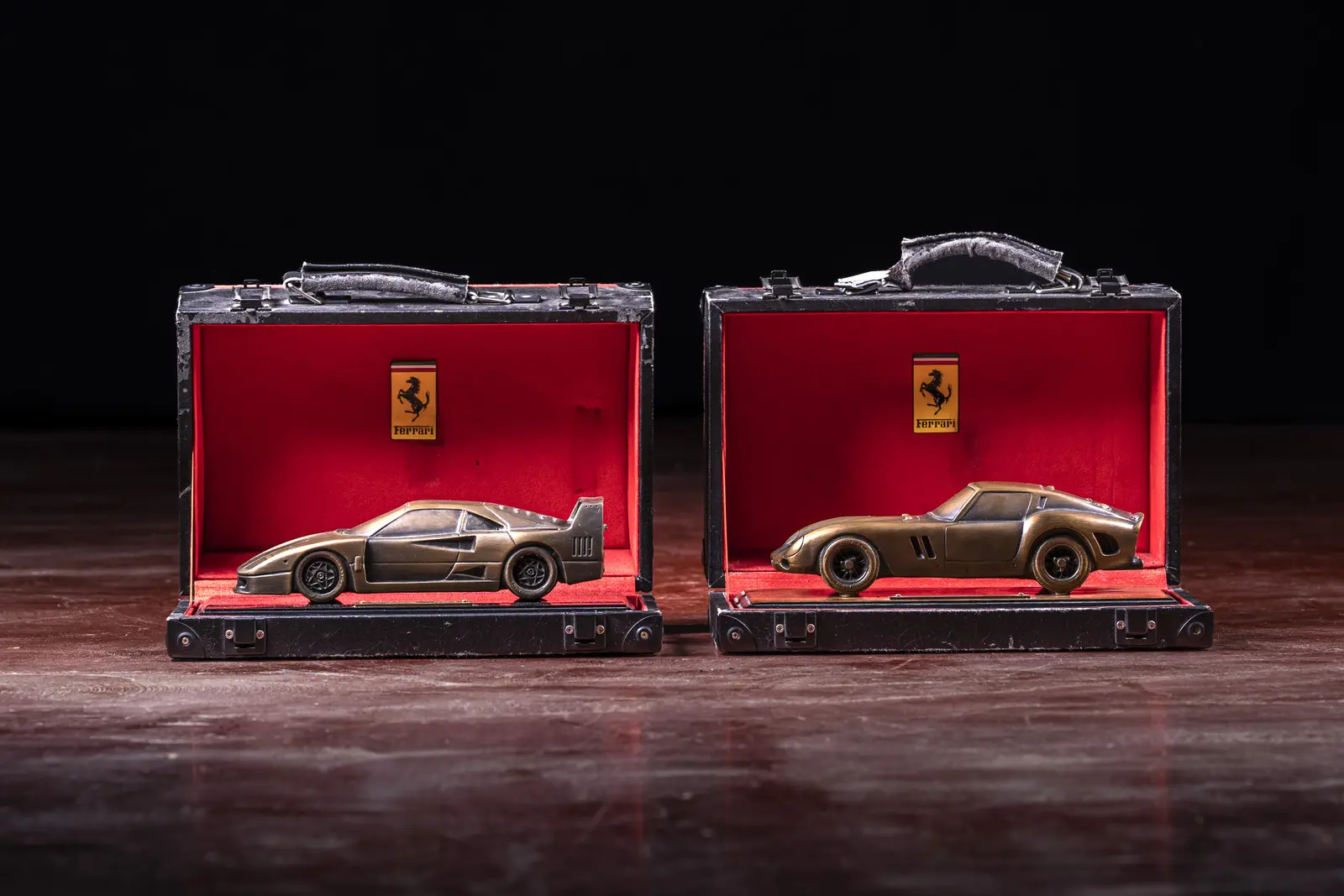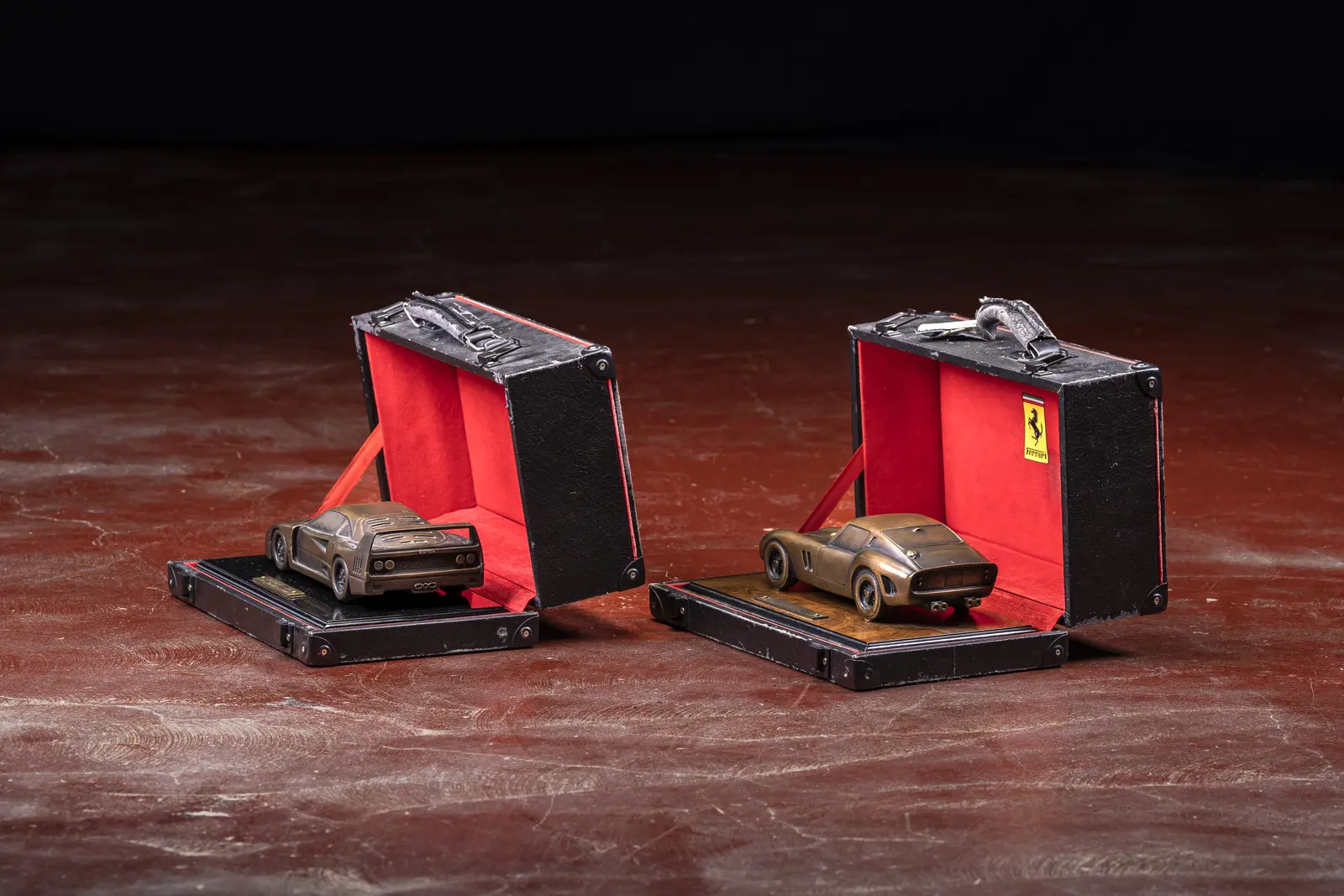 Замечательные чемоданчики с моделями Ferrari F40 и 250 GTO, отлитыми в бронзе!