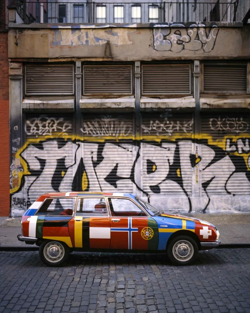 Этот Citroen GS Break "Drapeaux" 1972 года выпуска - один из четырех экземпляров "раскрашенных" флагами европейских государств в честь победы модели GS в конкурсе "Европейский автомобиль года" в 1971 году.