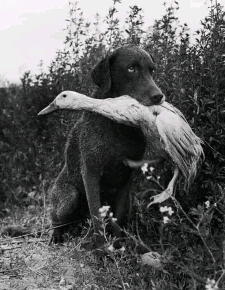 Это изображение запечатлело не сцену охоты, где ретривер приносит хозяину добычу. Присмотревшись, можно заметить: утка жива, а собака держит её с удивительной осторожностью и трепетной заботой. И это неудивительно — к тому моменту они были неразлучными друзьями уже несколько лет.