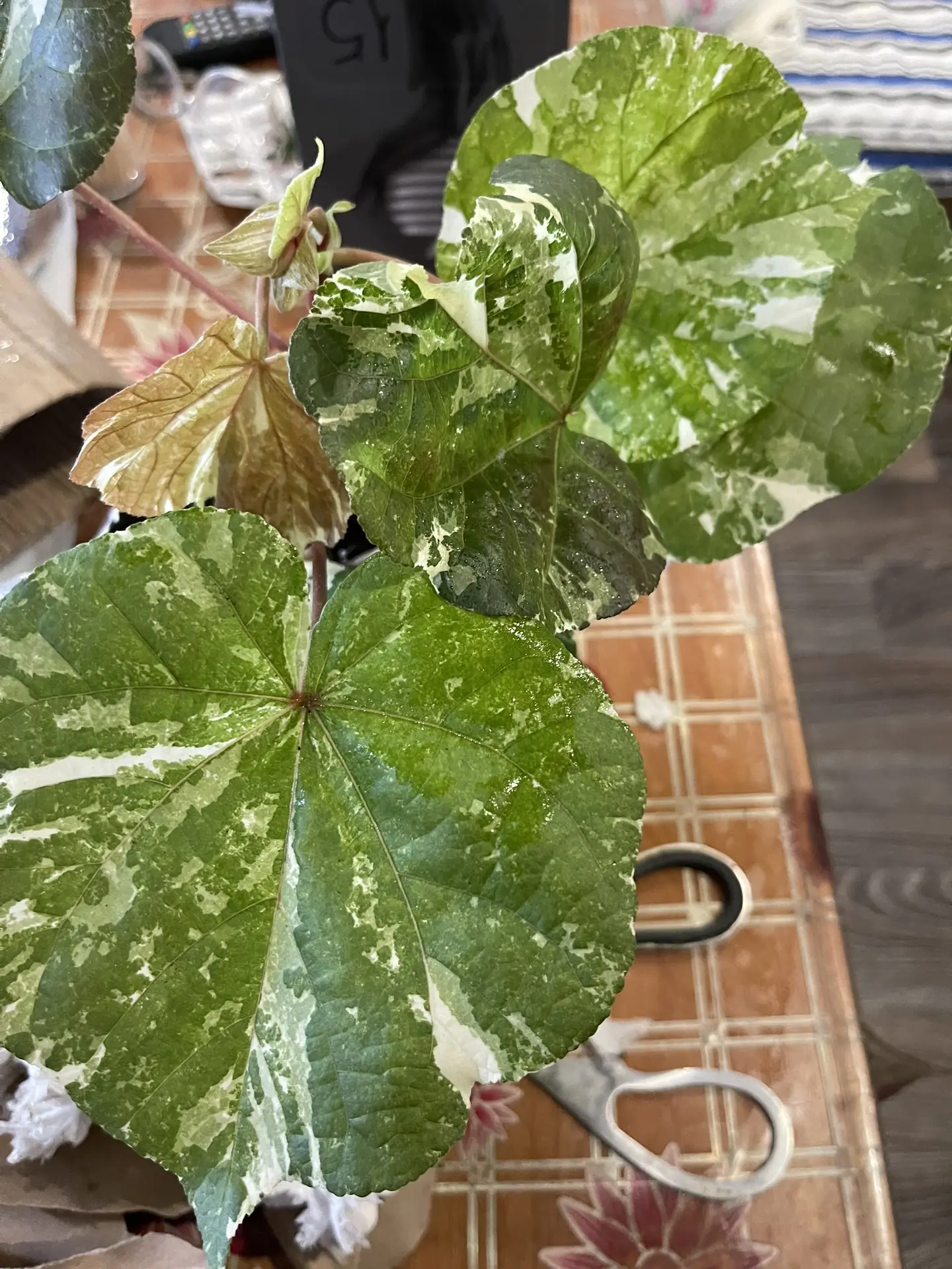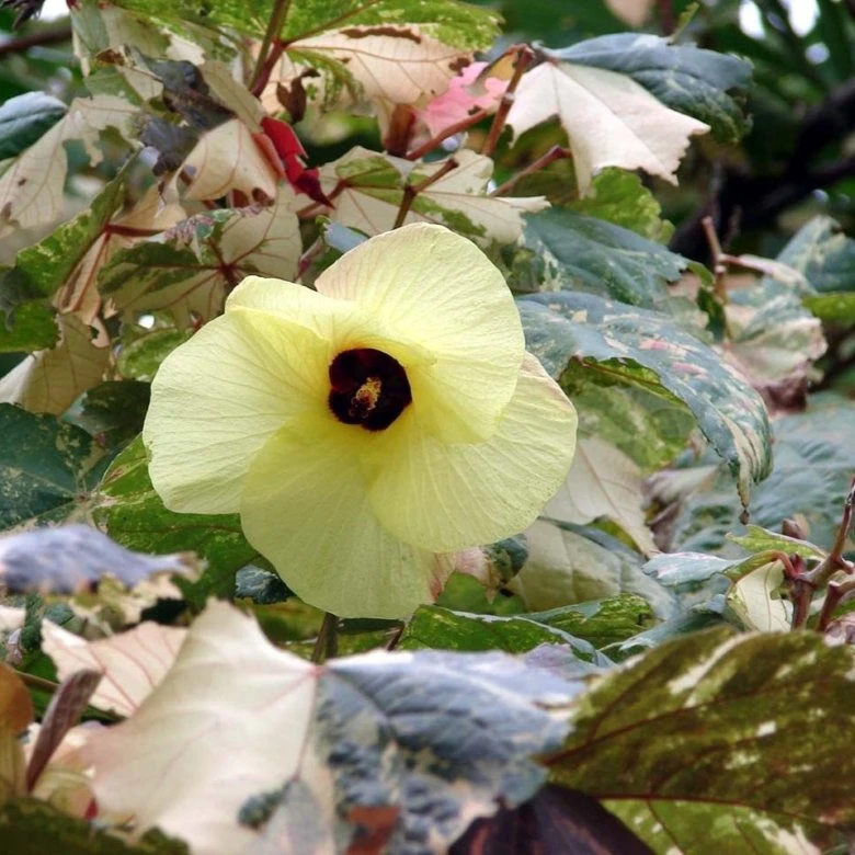 Знакомьтесь, Растение Гибискус липовидный вариегатный (Hibiscus tiliaceus Variegated). Живое комнатное растение в горшке.