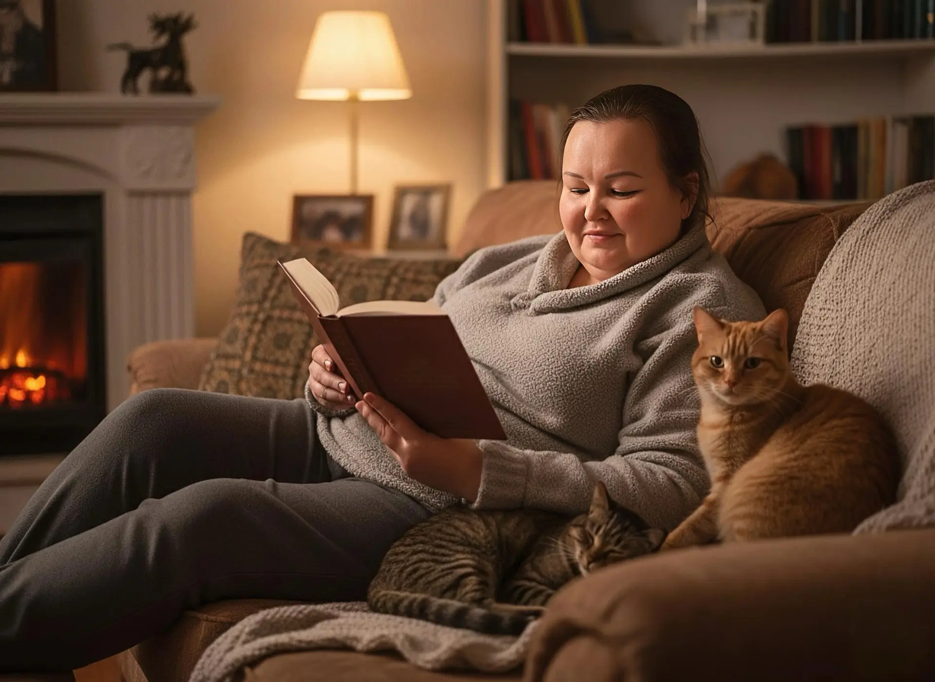 -Посиди со мной –просит муж- устала же. Ну её, еду, я не голодный. Потеснив наглых кисок сажусь рядом с ним, он берет меня за руку.