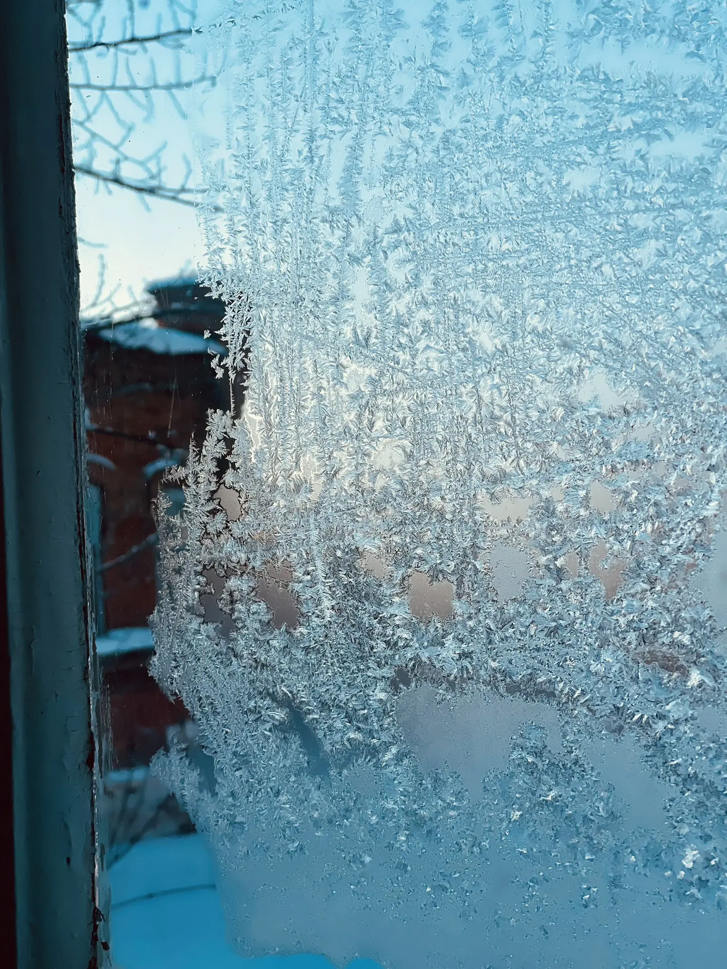 Шажок за шажочком отвоевывает себе пространство, расстилает морозные кружева на траве, окнах, решетчатом заборе.