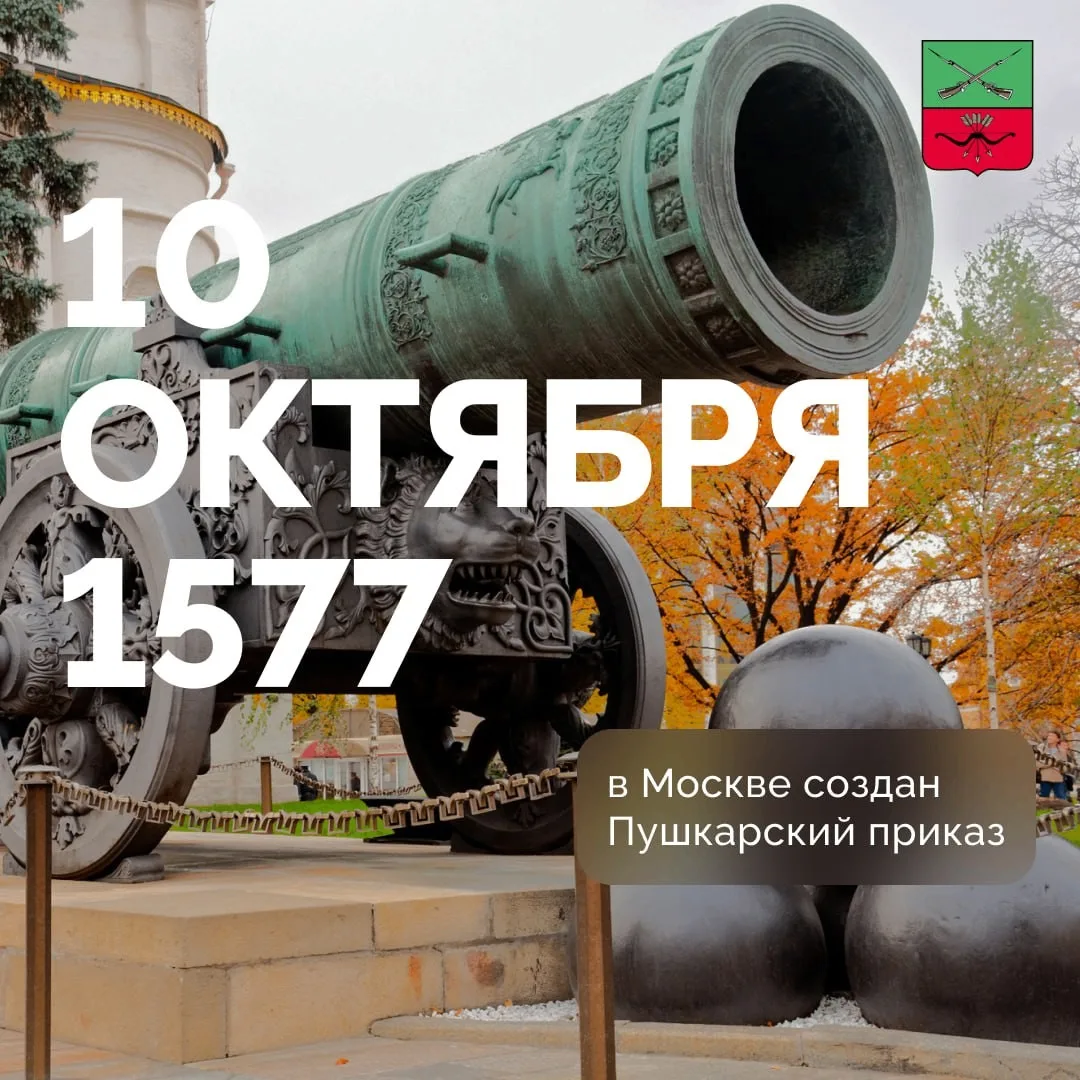 Пушкарский приказ был создан 10 октября 1577 года и объединил все пушечные избы в крупных городах Русского государства