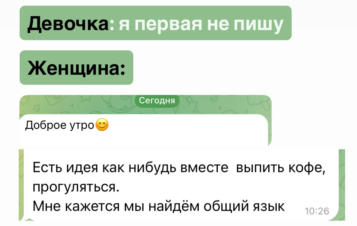 А вот это вот «я первая принципиально не пишу/ не звоню» вызывает лишь у меня недоумение. Ну ок, ваше право 🤷♂️
