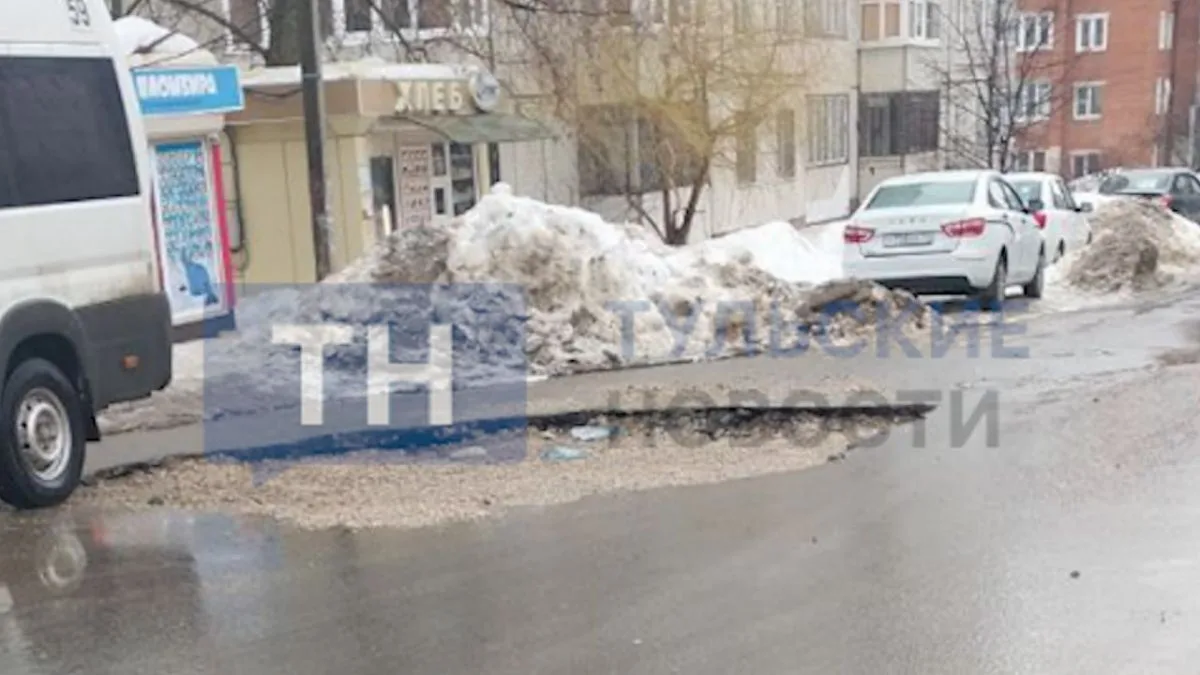 В Туле на улице Переносной образовалась огромная яма после провала асфальта