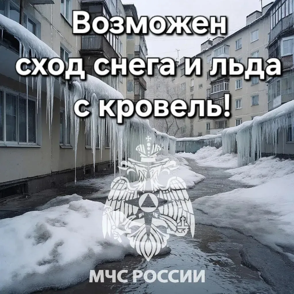 В связи с повышением температуры воздуха до положительных отметок существует вероятность возникновения несчастных случаев, обусловленных сходом снежных масс и наледи с крыш зданий, а так же причинения материального ущерба имуществу.