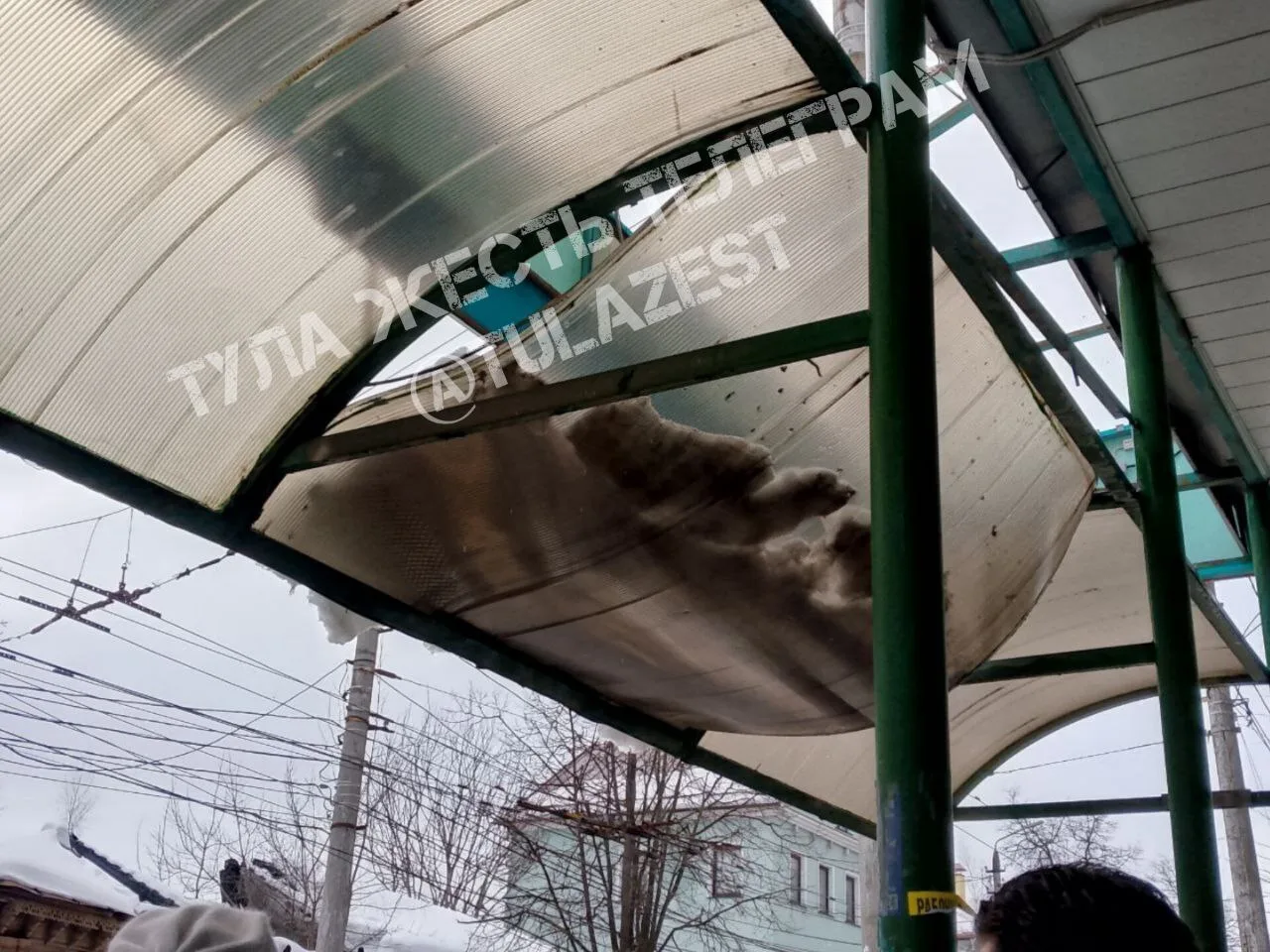 На остановке Луначарского от снега продало крышу