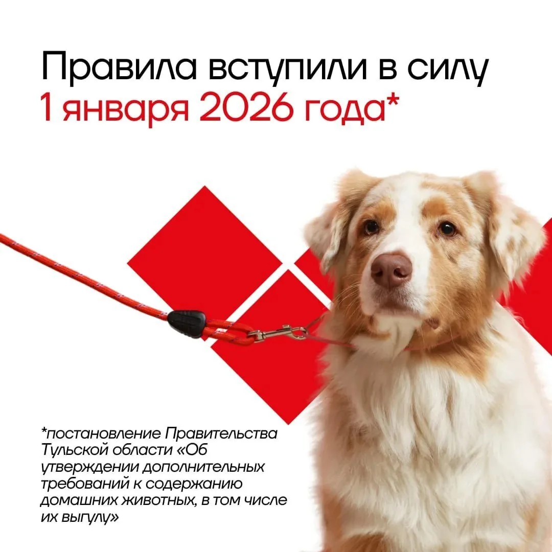 О новых правилах регистрации и выгула домашних животных в Тульской области 🦮