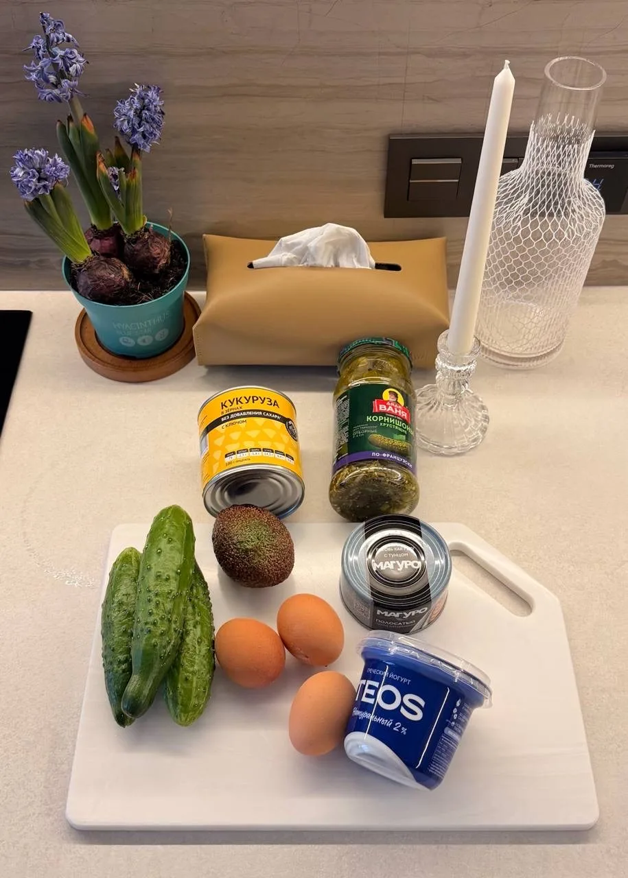 сегодня получилась вкусная импровизация, но в процессе готовки у меня не оказалось консервированной кукурузы.. добавила горошек, но вам советую приготовить именно со сладкой кукурузой — выбирайте без сахара в составе