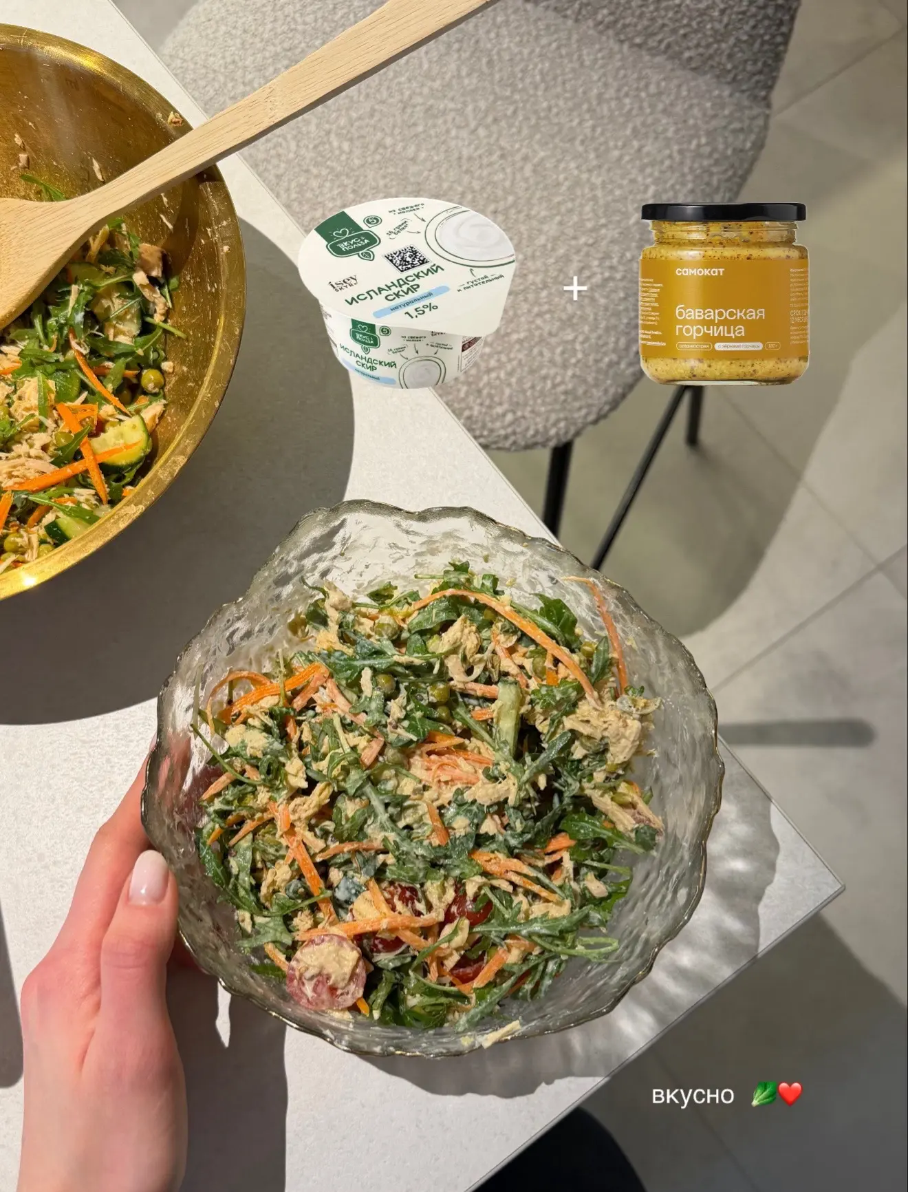 и самая простая заправка: скир + горчица + соль = безумно вкусно и сытно