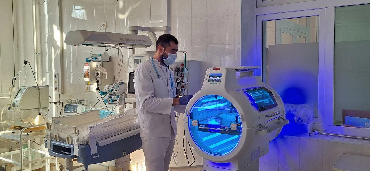 Отделение для новорождённых областной больницы было дооснащено в 2025 году в рамках реализации федерального проекта «Охрана материнства и детства» нацпроекта «Семья». Здесь доступны искусственная вентиляция лёгких, фототерапия желтухи новорождённых — как стандартная, так и интенсивная, с всесторонним световым воздействием, а также оборудование для управляемой гипотермии при тяжёлых состояниях.