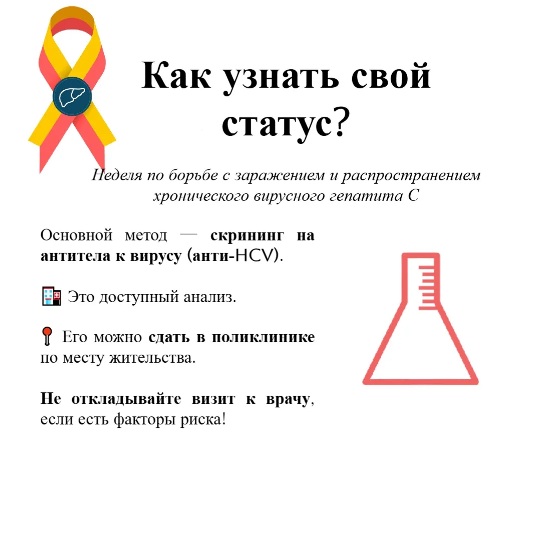 Доступный анализ в поликлинике помогает выявить инфекцию на ранней стадии, а своевременная терапия снижает риск смерти вдвое и предотвращает тяжёлые осложнения — цирроз и рак печени.