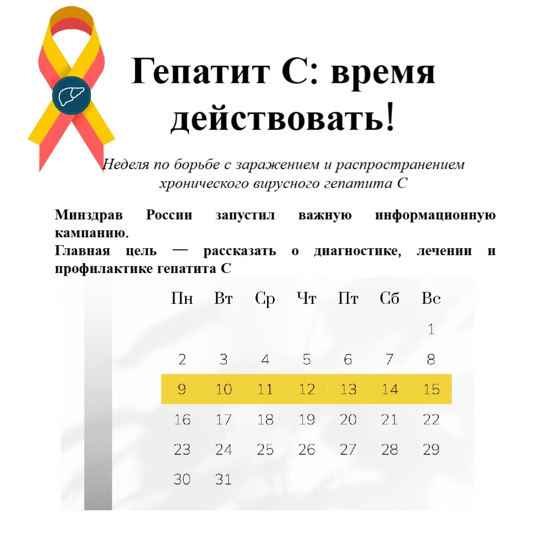 С 9 по 15 марта проводится Всероссийская неделя по борьбе с заражением и распространением хронического вирусного гепатита С, инициированная Минздравом России.