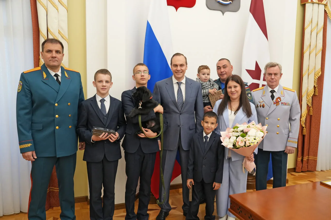 Накануне Дня гражданской обороны познакомились с замечательной семьёй Бусаровых из Лямбирского района. Глава семьи Александр 12 лет работает в пожарной охране - все гумгрузы нашим парням в братские регионы отвозит он. Доверие 💯- у земляка колоссальный опыт вождения большегрузной и тяжелой техники. Семья под стать! Крепкая, дружная, весёлая - 4 парней воспитывают с супругой Надеждой. Старшие в спорте, младший сегодня освоил футбол ⚽️ Не хватало только верного друга 😉 Подарили Бусаровым щенка-лабрадора Оскара. В большом доме такой помощник точно пригодится!