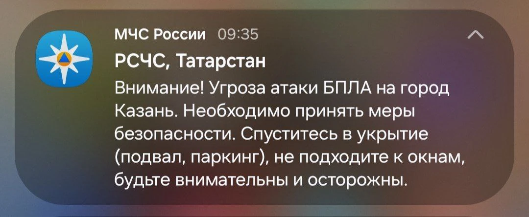 ❗️ Угроза атаки БПЛА на город Казань - МЧС