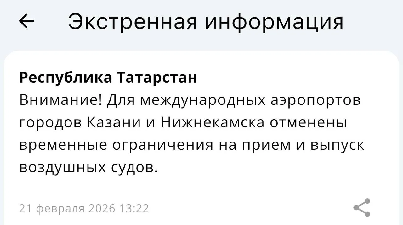 ⚡️ Временные ограничения для аэропортов Казани и Нижнекамска отменены