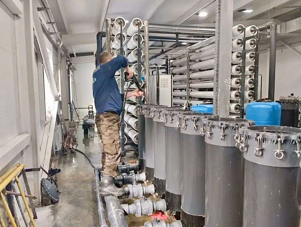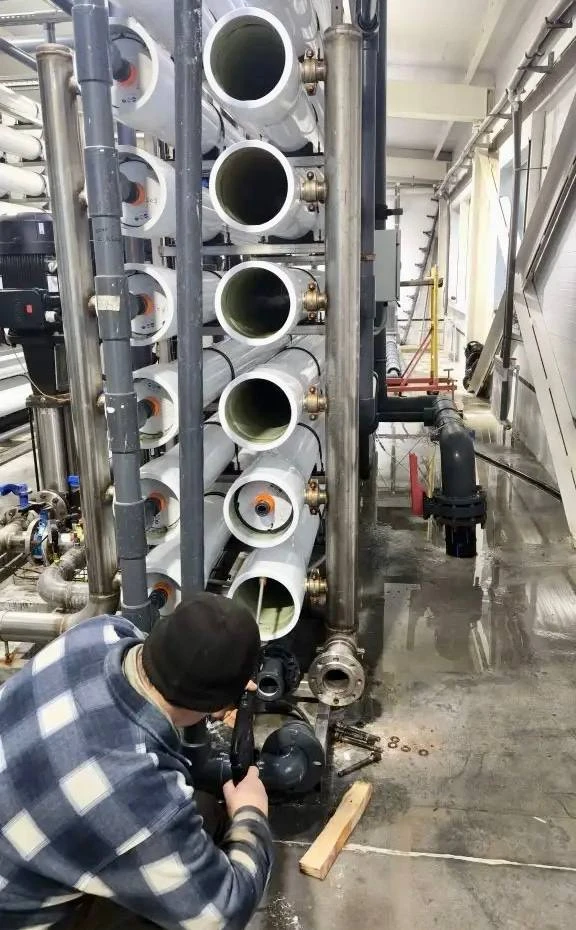 Наши специалисты заменили около сотни мембран на двух линиях обратного осмоса, а также фильтры непосредственно перед установкой. Это необходимо для поддержания стабильной работы станции и обеспечения высокого качества воды.