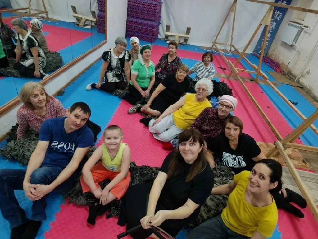 Сегодня Елена Кошкина - вновь на своем втором рабочем месте, размечает ленты для плетения сетей, руководит процессом, подбадривает соратниц по благому делу.