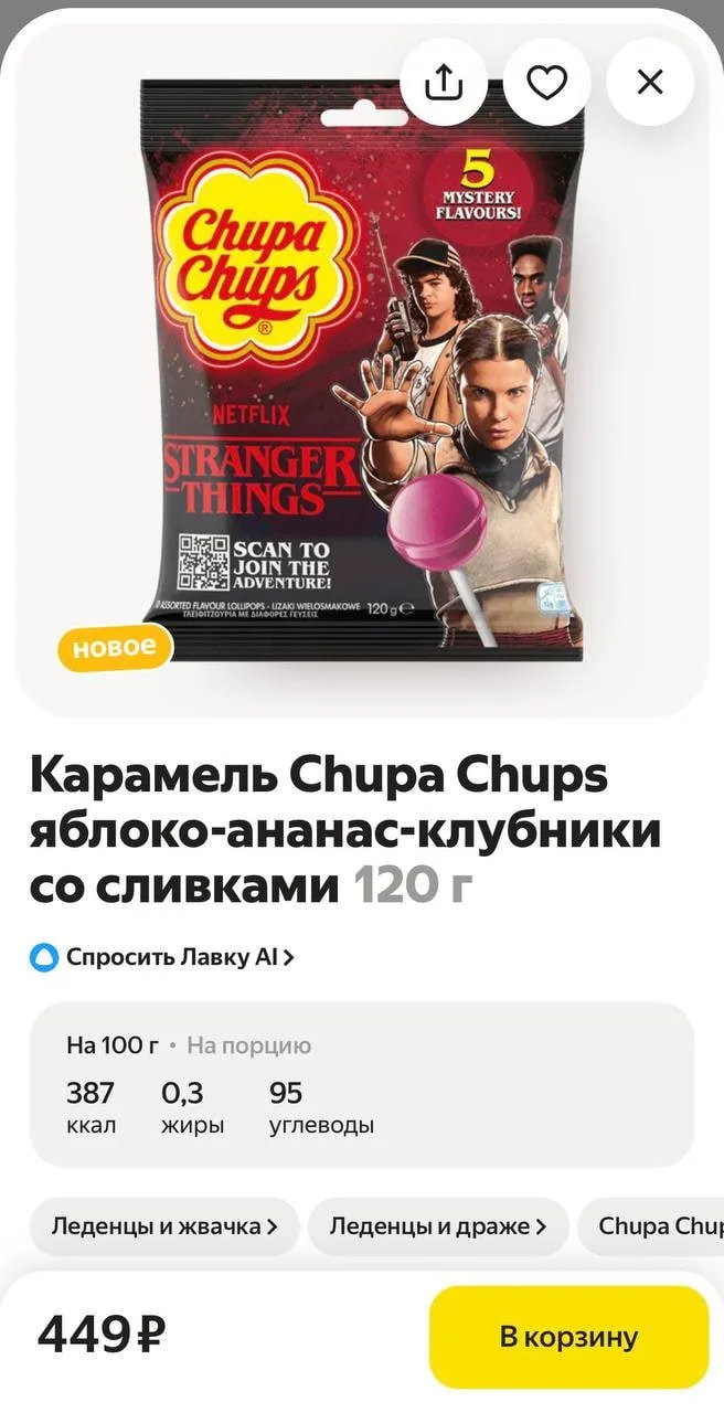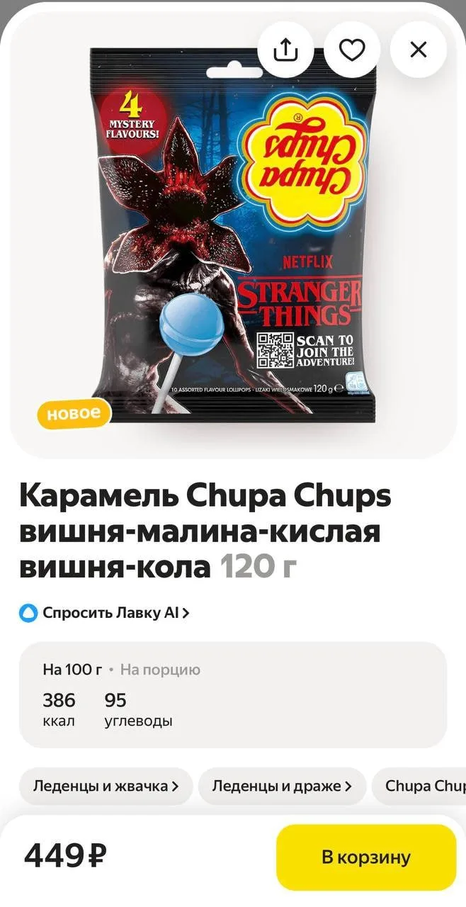 🌟 В «Яндекс Лавку» завезли чупа-чупсы по «Очень странные дела» — за 449 рублей можно попробовать сладости по культовому сериалу