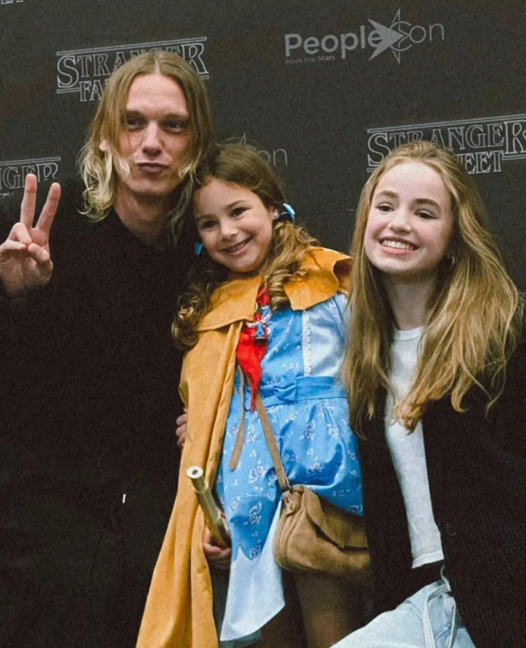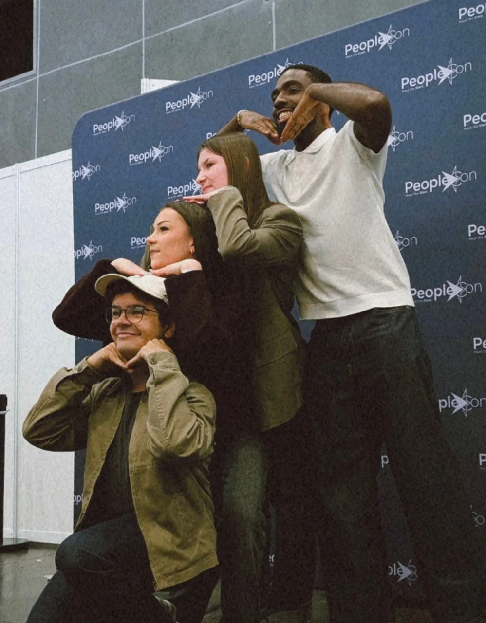 Калеб Маклафлин, Гейтен Матараццо, Джейми Кэмпбелл Бауэр и Нелл Фишер фотографируются с фанатами на конвенции Stranger Things Con